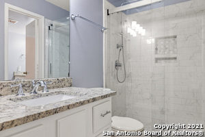 Charming, remodeled, Modern Mansard (Second Empire) condo in the heart of Alamo Heights! Peaceful neighborhood and highly-rated schools. 10-minute drive to airport. Easy access to IH 410 and US 281. HEB, Quarry Mall, Starbucks, Howard Kindergarten and AH Middle School are just a short walk away. Recently remodeled (kitchen, baths, built-in oven, and cooktop). MBR has 2 closets. BR2 has walk-in closet. 24-hour surveillance cameras. Garbage pick-up at front door. Parking: 1 in garage; 1 reserved in front of condo. Water & gas included.