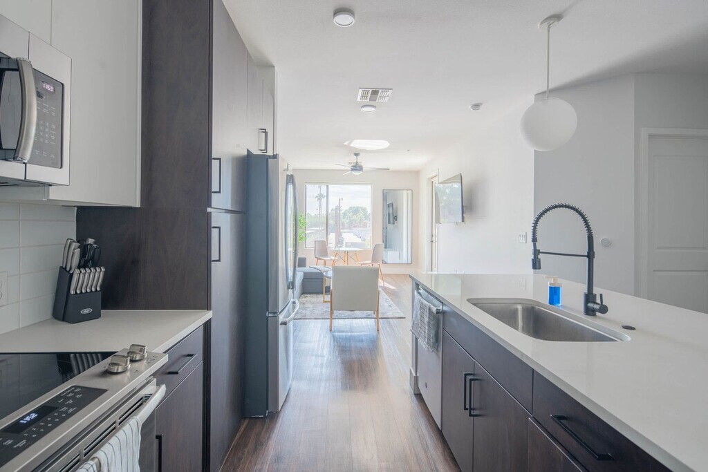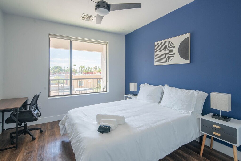 Relax and unwind in this stylish 1-bedroom apartment located in the heart of Central Downtown Tempe. This vibrant area is home to numerous award-winning restaurants, shops, historic landmarks, and attractions. From this prime location, exploring Tempe and the surrounding region is easy and convenient. And when you're ready to wind down, simply retreat to the comfortable apartment to relax. Come relax in this 1-bedroom, 1-bathroom unit. The living space features an innovative open-concept design that blends the living and dining areas with the kitchen, creating a modern and sleek living experience. The living room is ideal for relaxing and enjoying the company of friends and family while watching a good movie or a show. The apartment features a fully equipped kitchen where you can easily prepare your favorite meals. The inviting full bathroom is completely private and stocked with all essential toiletries. One parking space is included. Pets are allowed depending on size or if they are service animals. An additional cleaning fee is required per pet: 1-7 Nights: additional $25 per night, 8-29 Nights: additional $200, 30+ Nights: additional $300. There is a 2 pet maximum and only cats and dogs are allowed. If you are found to have brought pets without prior notification, there will be a $500 fee. Nestled along the picturesque banks of the Salt River in Tempe, Arizona, the neighborhood offers a perfect blend of urban vibrancy and natural beauty. This prime location provides easy access to the vibrant heart of Tempe, known for its lively atmosphere and cultural attractions. Just a short stroll away, you'll find the iconic Tempe Town Lake, a shimmering oasis amidst the desert landscape, where you can enjoy boating, biking, and walking trails. The neighborhood is also a haven for food enthusiasts, with an array of restaurants, cafes, and bars serving everything from local Southwestern cuisine to international flavors. For those seeking entertainment, the nearby Mill Avenue District boasts an array of shops, theaters, and live music venues. Whether you're looking to explore the great outdoors or immerse yourself in Tempe's diverse cultural scene, this neighborhood offers a dynamic and inviting backdrop for your stay. Quiet hours are between 10pm and 8am every day. If there are noise complaints or any violation of this rule, it may result in cancellation of booking and removal from the property without refund. There is a strict no-party policy. No parties or events are allowed. If there is a party of any kind, the police will be called and everyone will be removed from the property with no refunds. Smoking is prohibited without exception on this property. If any signs of smoking are found in the unit or on the premises, a fine of $500 will be imposed. You may be charged extra for cleaning if the property is left in a state that necessitates additional cleaning. Lost or unreturned keys will incur a fee of $80 for key replacements and $150 for key fob replacements. Depending on our cleaning schedule, early check-in or check-out may be accommodated at a fee of $25 per hour. Otherwise, for delayed checkout, there will be a $500 late check-out fee. If a lockbox is provided, it must be kept locked at all times. Some stays have auto-locking doors so keep the keys on you. The bedroom includes an office desk and chair, providing a comfortable space for remote work. High-speed Wi-Fi is available throughout the apartment. [SI]