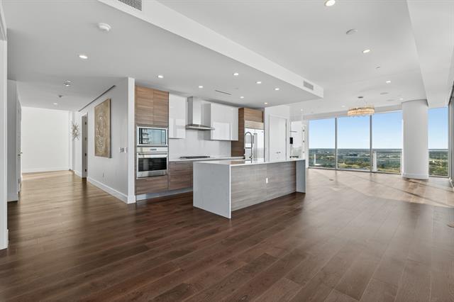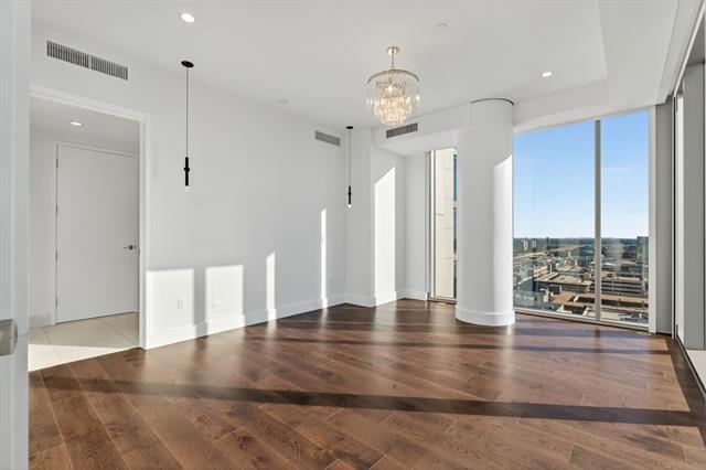 Experience the pinnacle of luxury high-rise living at Windrose Tower, an architectural icon in the heart of Legacy West. This impeccably designed residence offers a seamless blend of modern sophistication and timeless elegance, with panoramic floor-to-ceiling windows framing sweeping city and sunset views. The open-concept layout is ideal for both grand-scale entertaining and everyday comfort, anchored by a chef’s kitchen with a bold quartzite waterfall island, Wolf and Sub-Zero appliances, custom cabinetry, and a natural gas range all with stunning views from the 17th floor. The living and dining spaces extend effortlessly to a private balcony with a gas fireplace, an inviting retreat for enjoying golden-hour light or endless views day or night. The primary suite is a serene sanctuary, featuring a spa-inspired bath with a deep soaking tub, oversized walk-in shower, dual vanities, and an oversized custom closet. Additional bedrooms offer en-suite marble baths and generous closet space, providing comfort and privacy for guests. Designer-selected finishes, hardwood floors, high ceilings, smart home integration, and curated lighting elevate every detail of the home. Two reserved garage parking spaces and a dedicated storage unit offer convenience and peace of mind. Residents enjoy an unparalleled amenity package: 24-hour concierge and valet, resort-style saltwater pool with cabanas, state-of-the-art fitness and wellness center, golf simulator, wine lounge, conference rooms, outdoor kitchens, landscaped terraces, and pet spa. The Windrose also offers two guest suites for visitors! Just steps away, indulge in the vibrant shopping, dining, and entertainment of Legacy West - North Texas’s premier lifestyle destination. Windrose Tower is more than a home; it’s an uncompromising statement of luxury, privacy, and sophistication that can be yours!