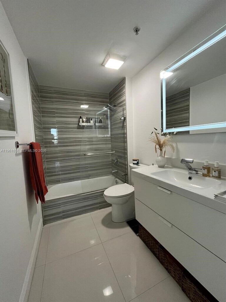 This is a 2-bedroom, 2-bathroom apartment features a well-designed split floor plan that offers privacy and comfort. The unit boasts unobstructed views of Biscayne Bay and an expansive private balcony accessible from both the living room and the master bedroom. The master bathroom includes a bathtub and a separate standing shower, while the second full bathroom is conveniently located for guests or the second bedroom. The residence offers ample closet space throughout and comes equipped with an in- unit washer and dryer. The apartment also includes one assigned, covered parking space in a very convenient location. Situated in a quiet area, the unit provides a peaceful living environment with stunning waterfront scenery. Located in the heart of North Bay Village, 360 Condominium is an exclusive gated waterfront community surrounded by the beauty of Biscayne Bay. Residents enjoy resort-style amenities including two swimming pools, two gyms, a sauna, a private marina, 24-hour security, and free valet parking. Ideally located close to fine dining, shopping, cultural attractions, and vibrant nightlife, the building offers easy access to Miami Beach, Downtown Miami, and major routes, combining tranquility with exceptional convenience. Minimum lease term is one year. MLS # A11961658