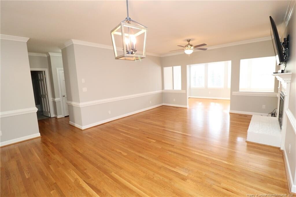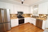This desirable end unit, one level townhome nestled in an established North Raleigh neighborhood proves that you can have your cake and eat it too! 7915 Footman Way greets you with a lush, expansive front yard in a tucked-away neighborhood that feels exceedingly private and secluded, yet is less than 10 minutes away from Crabtree Valley, Glenwood Avenue, I-540, local parks, highly-rated schools and so much more. Upon arrival, you'll immediately appreciate the additional parking space, the attached garage and a welcoming curb appeal that greets you each day. Step inside to discover beautiful hardwood floors that grace the entire home; that's right, not a stitch of carpet in sight! You'll also love the modern neutral paint and a floorplan that works perfectly for easy, everyday living. The foyer leads you into a spacious family room that seamlessly intertwines with an adjacent, perfectly-proportioned dining space. The dining area features a bay window that fills the room with natural light as well as an elegant chandelier and custom trim details. The adjoining family room offers a cozy fireplace with a brick hearth and a mantle as well as a flat panel TV with a soundbar provided for resident's use. From here, the space naturally flows into a stunning sunroom, where you'll appreciate the lovely view provided by no less than 6 picture windows overlooking a private wooded buffer. The kitchen has been carefully renovated with high-end finishes and appliances. Here, you'll find white Shaker-style cabinetry accentuated by gorgeous granite countertops and a custom-tiled backsplash illuminated by under-cabinet lighting. You'll surely love the sleek, stainless-steel appliance package that includes a gas oven, a built-in microwave, dishwasher, a French-door refrigerator, and a dual bowl stainless-steel undermount sink beneath a picture window with a pendant light. The kitchen also includes a pantry, an integrated wine rack and a sunny breakfast nook with a bay window and custom plantation shutters. Other first-floor features include interior access to the one-car garage with overhead storage and a Tesla EV charger, as well as a laundry center with an included washer and dryer for resident's use. The expansive primary bedroom is quite impressive with a ceiling fan, dual closets, a solar tube and direct access to a renovated en-suite bathroom. The bathroom features tiled floors, a marble-topped vanity with dual sinks and brushed nickel hardware as well as a beautifully tiled walk-in shower with a frameless glass enclosure, shampoo and soap niches, and dual shower heads. The primary bedroom also enjoys direct access to a stunning, light-filled sitting area that includes double skylights, multiple picture windows, a ceiling fan, and direct access to the backyard. A stylish barn door allows the space to be closed off for privacy, making it perfect for morning coffee, a home office, a dedicated exercise space, and more. The second bedroom is also quite spacious and includes a bay window a closet and easy access to a full hall bathroom with a marble-topped vanity, tiled floors, and a shower/tub combination with dual shower heads. Before wrapping-up your tour, be sure to visit the enormous walk-up attic space upstairs! Property Features: Availability: Available for immediate occupancy Lease Terms: 12 and 24 month lease terms available. Pets: Sorry, no pets allowed All Appliances Included: Washer/dryer and French door refrigerator all provided for resident's use Hardwood Floors: Not a single stitch of carpet in sight Location: Minutes from North Hills, Crabtree Valley Mall, Creedmoor Road, I-540, and more First Floor Living: Enjoy the ease of first floor living Attached Car Garage: An attached garage offers convenience, additional storage space and security NOTES: We do not advertise on Facebook or Craigslist. Applications must be completed at $75/adult non-refundable application fee