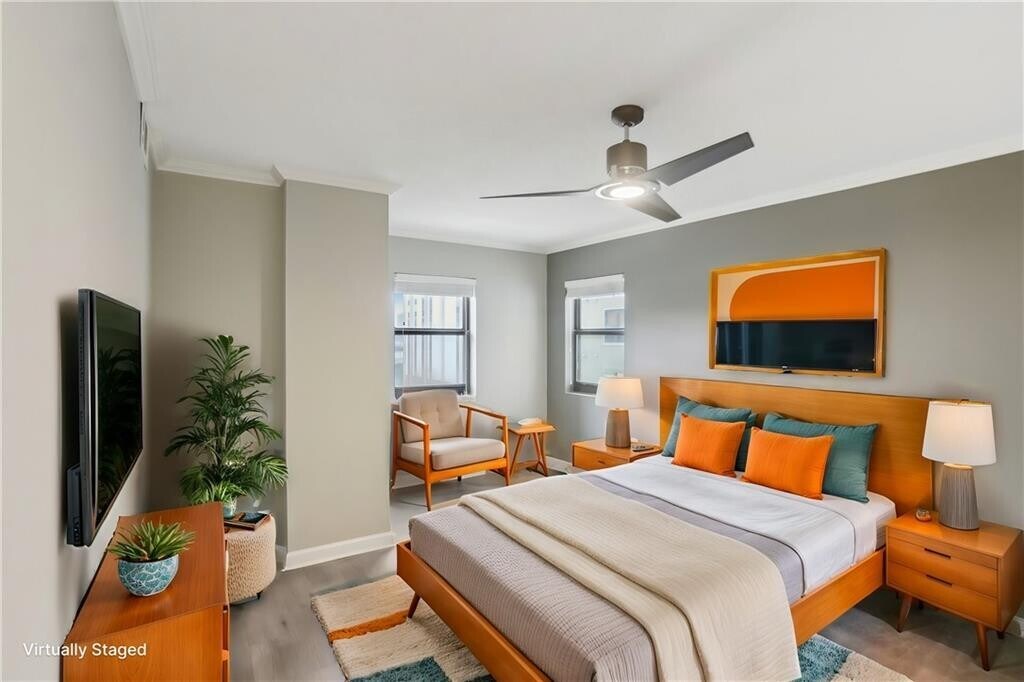 Step into stylish,low-maintenance living with this beautifully updated 1-bedroom,1-bathroom end-unit condo,featuring the second-largest floor plan in the building. The open-concept layout is perfect for entertaining,with freshly painted walls and elegant wood flooring that flows seamlessly throughout the space. The gourmet kitchen is a chef’s dream—complete with granite countertops,stainless steel appliances,and ample cabinetry. A modern bathroom showcases sleek tile work and upscale finishes,adding a touch of luxury to your daily routine. Outside your door,enjoy resort-style amenities: unwind by the sparkling pool with private cabanas,stay active in the state-of-the-art fitness center,or let your pup play in the on-site dog park. Additional perks include a convenience store,dry cleaner,and an assigned parking space,all within the community for your ease and comfort. This move-in-ready home offers the best of modern living in a prime location. Don’t miss out—schedule your private tour today! MLS ID 7750371