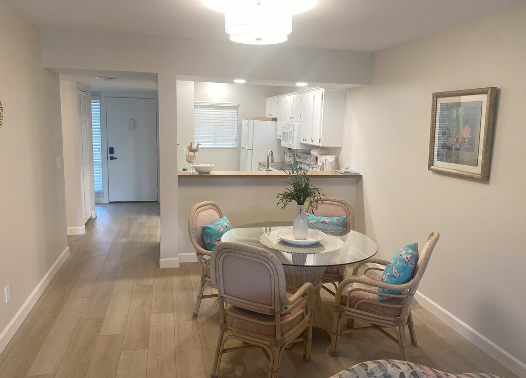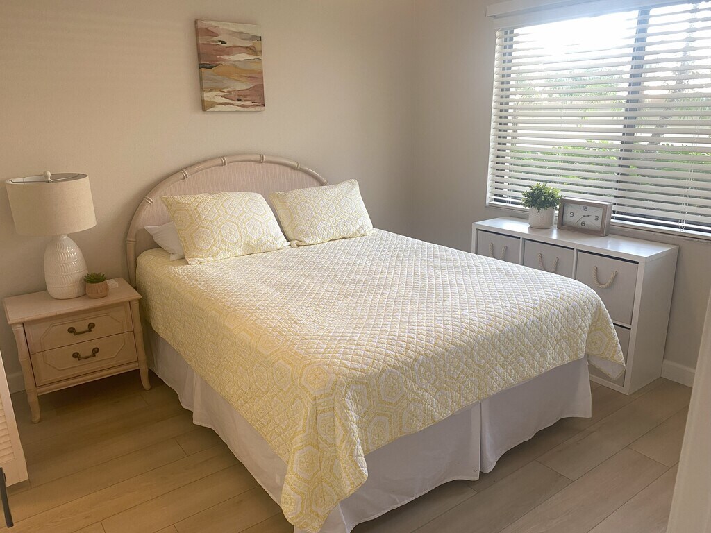 NEWLY RENOVATED FIRST FLOOR 2 Bedrooms, 2 Bathrooms Available 2025 for either Seasonal or up to an Annual rental - 3 months minimum This Bird Bay Condo has all New Flooring and Renovations in both bathrooms, accessories and renovations that extends to the indoor glass enclosed Lanai Area. Nicely done by an experienced Interior Designer. This condo is close to Venice Island and nearby this condo is a community pool and one more near the Bird Bay office. It is fully furnished with all the comforts of home with a fully equipped kitchen, also a washer and dryer. Enjoy your visit to Venice Florida from beach towels, beach chairs, golf clubs, tennis rackets to board games and more. Bird Bays Resort Style amenities include pickleball, tennis courts, Junior size Olympic Pool, fitness center, library shuffleboard, bocce courts and a second community pool behind this unit. This First Floor condo is a spacious 1013sqft with two comfortable sized bedrooms. The Master Bedroom has a king-sized bed, walk in closet, with adjacent bathroom and the Guest bedroom has a queen sized bed, walk in closet, and a bathroom close by. Lounge in comfort inside this glass enclosed Florida Room with a view of peaceful lush landscapes and watching local wildlife or sit outdoors on the lovely back patio. Morning, day or night there are events and things to do. Stroll the Historic Downtown Venice or events from walking Nature Paths, Legacy Trail, Beaches, Activities, Concerts, Dining and more. Book this in advance, prices dependent on number of months booked over 6 months Renovated FIRST FLOOR CONDO. Available 2025 either Seasonal or up to an Annual rental - 3 months minimum Rates 2025 from APR 1800 MTHLY - 2026 OCT, NOV, DEC, 2600 MTHLY - 2026 JAN, FEB, MAR 3300 MTHLY