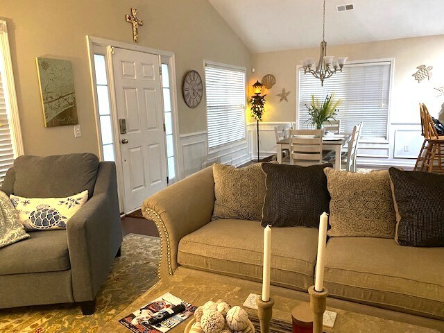 3 bedroom 2 bath home located at The Farm at Brunswick on a quiet dead-end street. Large master bedroom with cathedral ceiling, walk-in closet and full bathroom. Living room and dining room with cathedral ceilings. Nice size kitchen with lots of cabinets and includes all appliances. Amenities include a clubhouse, fitness center and pool.