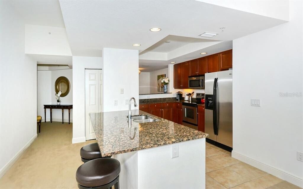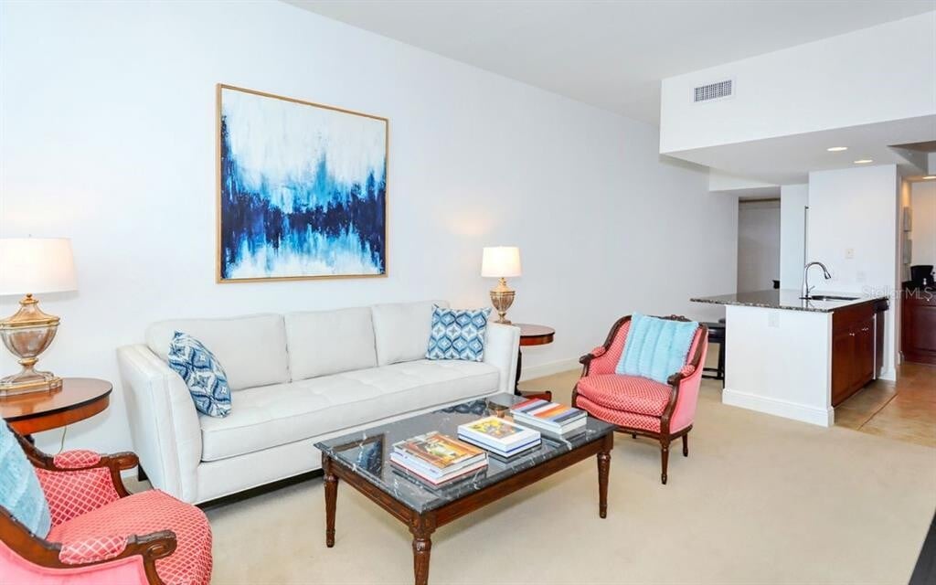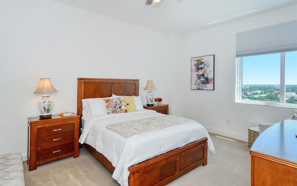 Turnkey furnished with modern décor featuring 2 Bedrooms,2 bathrooms available immediately for the season at $5,000/month or annually at $4,000. This 11th floor unit,located in the South tower,overlooks the pool and has panoramic city views with some partial bay views from your private balcony. Great room concept with a split plan bedroom for privacy,the primary bedroom features a king size bed with adjustable settings,a large walk-in closet,and a bathroom with a soaking tub,a separate shower,and 2 sinks. The 2nd bedroom has a queen size bed with adjustable settings,and a double closet,the 2nd bathroom has a large walk-in shower. The kitchen is equipped with new appliances,granite countertops,and white cabinetry. Also included,is a very convenient separate laundry room with extra storage and a wine cooler. Alinari offers tons of amenities starting with 3 guest suites,an enormous heated lap pool and spa,locker rooms with sauna,huge theater room,state of the art fitness room,social room,wine room,billiard room,24 hour concierge service. Located across from the performing Art Theater,the Van Wezel,and the popular newly designed bayfront,you will enjoy the proximity to all what downtown has to offer. MLS# A4668622