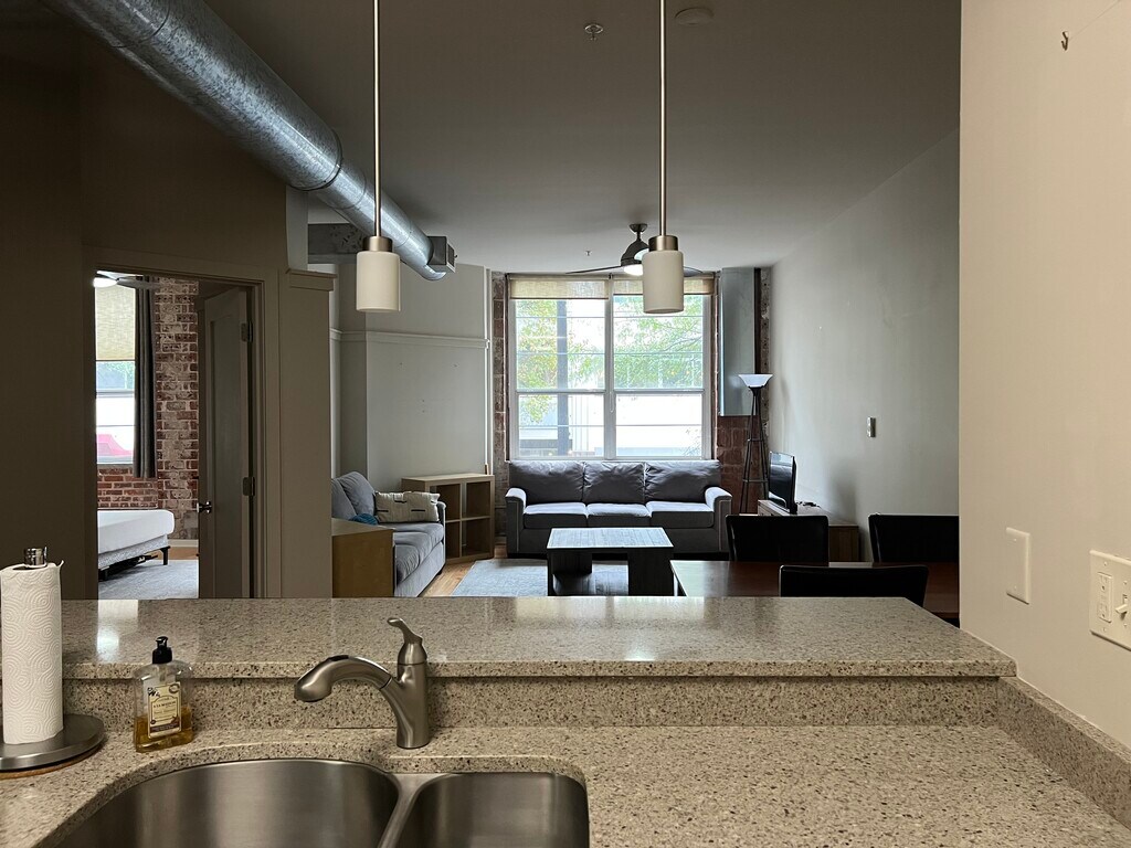 In the heart of Midtown and in the historic building of Cornerstone Village,this large 2 bedroom/2 bath home is the ultimate city living! This home is a great roommate floorplan with open concept kitchen overlooking your exposed brick walls with tons of sunlight from the corner exposure. The unit boasts concrete finished flooring,in unit laundry,welcoming hallway entrance,granite countertops and great storage throughout. Also comes with two parking spaces in the gated and secured attached parking garage. The location in Midtown cannot be beat and walkable to it all: The Fox Theatre,GA Tech,Piedmont Park and The Beltline,tons of restaurants/bars/shopping plus a quick walk over to Marta for easy access!