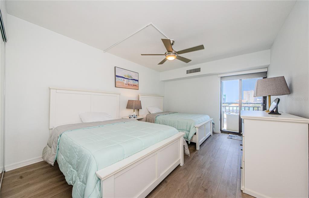Call to see this Vacation in Paradise - a Super Private Vacation Spot with its own Private Beach! This incredible oasis just south of downtown Clearwater Beach is ready for you. Just pack your clothes and food,although plenty of nearby restaurants can cover your dining needs. Walk directly to one of the three pools located at the Sail Master Building or cross the street to the community's private beach. Enjoy amenities like a tennis court,weight room,fire pit,BBQ area,and ample parking. Enter the building with your fob,take the elevator to the 5th floor,and step into this naturally lit,stunning condo. The updated kitchen has everything you need to cook and relax,while the comfortable couches offer views of the Gulf of Mexico and a big-screen TV. The enclosed lanai features wall-to-wall windows with breathtaking Gulf views. All utilities are included,with electric up to $100 a month. The spacious master bedroom boasts a king-size bed and wall-mounted TV,while the guest room has two queen-size beds. All linens are provided for your comfort. A washer and dryer are included,and the ceramic/wood-look tile flooring throughout adds a touch of elegance. Reserved parking is available in the garage,and the building has secure key fob entry. Walk to restaurants,entertainment,the Clearwater Yacht Club,Pier 60,and AVAILABLE with a 3-month minimum. Don't miss this chance to experience paradise away from the busy downtown. MLS# TB8444109