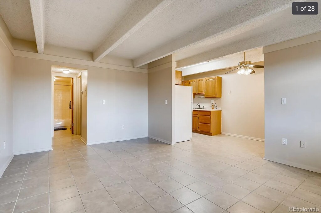 Freshly painted home with new kitchen appliances and remodeled bathroom (different from pictures) Will update ! Largest 1 bedroom floorplan in Park Belleview. Beautiful views of Progress Park! Across from Belleview Park/Pirates Cove! Updated bedroom carpet and pad. Ceramic tile on bathroom, living room, and kitchen floors. Updated interior paint. NEW storm door. Convenient access to Santa Fe, Broadway, many restaurants, and shops, including Sprouts 1 block away! Community pool and private storage closet. A shared, large laundry room/library is on the first floor. Elevator and assigned parking space near the building. Generous storage unit with built-in shelving. Plenty of guest parking. Friendly neighbors and an extremely organized property management company.