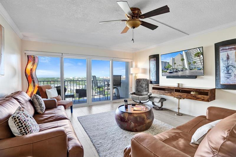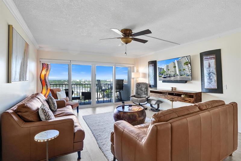 Beautifully renovated condo ideally located near the beach and some of Pompano Beach’s best restaurants and cafés. The seller upgraded the home with all impact windows, elegant new tile flooring, and custom doors, complemented by detailed crown molding in every room. Both bathrooms were redone with modern tile, fixtures, and high-end finishes. Built-in cabinetry in closets and custom shelving in the pantry provide excellent organization and storage. Every detail reflects quality craftsmanship and pride of ownership, creating a stylish, move-in-ready coastal retreat blending comfort, function, and timeless appeal. Amazing views of the Intracoastal and canal waterways.