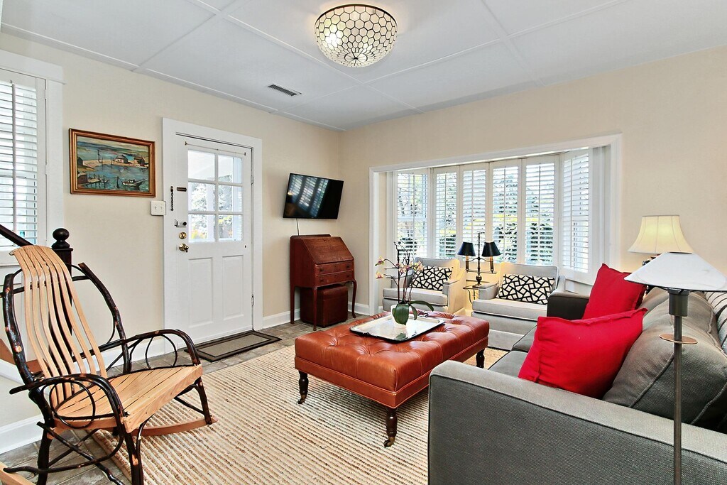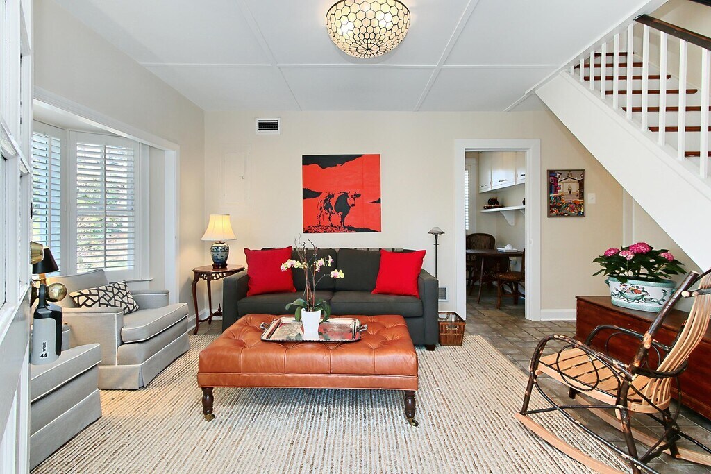 Impossible to find!! Why stay in a boring high rise building!! Stay here! FULLY furnished rental - super cute and charming in an Amazing , Private setting. This is a detached Cottage in a serene setting. Quality, prestigious community. Private parking, multiple patios, a sweet Screened Porch with stone floor, a shed for extra storage. Main floor is flexible with kitchen, living room, gorgeous full bath, dining room & den or bedroom. Upstairs are 2 lovely bedrooms. Your view will be lovely lawn or trees! Included in the rent is all yard work, internet and twice a month maid service which included sheet changing. Tenant pays flat $200 per month for all utilities. Terrific location just off of the George Washington Parkway - 5 minutes to Old Town, 2 minute walk to the bike/walking path & Potomac River. This is a super property for State Department folks, Geo bachelors/bachelorettes, corporate transferees. 3 month minimum lease but certainly could go for years.