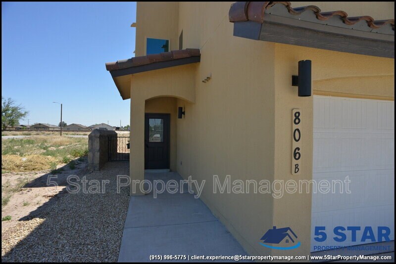 Discover the perfect combination of modern comfort and strategic location in this stunning duplex. This spacious 4 bedroom, 2.5 bathroom home features a bright, open concept floor plan with elegant tile flooring and refrigerated air for year round comfort. The chef ready kitchen comes fully equipped with a refrigerator, dishwasher, and gas oven, flowing seamlessly into the dining and living areas which is ideal for family gatherings. Nestled in a rapidly growing community, you are just minutes from the historic Mission Trail and Bulldog Championship Park, with quick access to Loop 375 and I-10 for an easy commute to Fort Bliss and downtown El Paso. Enjoy the convenience of an attached two car garage and a private backyard ready for your personal touch. Experience the tranquility of Socorro living with urban amenities just around the corner. Move in with ease using our Deposit Free Renting service through Obligo (available to qualified renters; fees apply). For Showings information and availability, please call at By: 5 Star Property Management | SOCORRO Texas Rentals | SOCORRO Property Management | Property Management in SOCORRO *Important: Information is deemed reliable but not guaranteed. All information is submitted subject to errors, omissions, change of price before the lease, or withdrawal without notice.