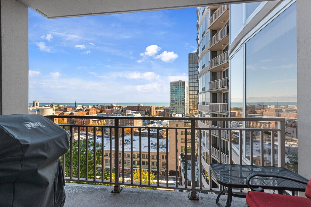 Rarely available luxury rental in the heart of Evanston. Enjoy views of the lake from every window in this exquisite 1600+ square foot, 2-bedroom (plus den), 2-bathroom 12th-floor unit. Views are East and North facing. Open-concept layout, espresso hardwood floors, fully-equipped kitchen, in-unit washer and dryer, ample storage space, high-end finishes. Building features hospitality suite, outdoor entertaining space, state-of-the-art fitness center, separate storage unit, bike storage room, 24/7 package retrieval, on-site management, and interior access to Target. One indoor parking space in the attached garage included. Walking distance to the lake and Northwestern University. Schedule your private tour today!