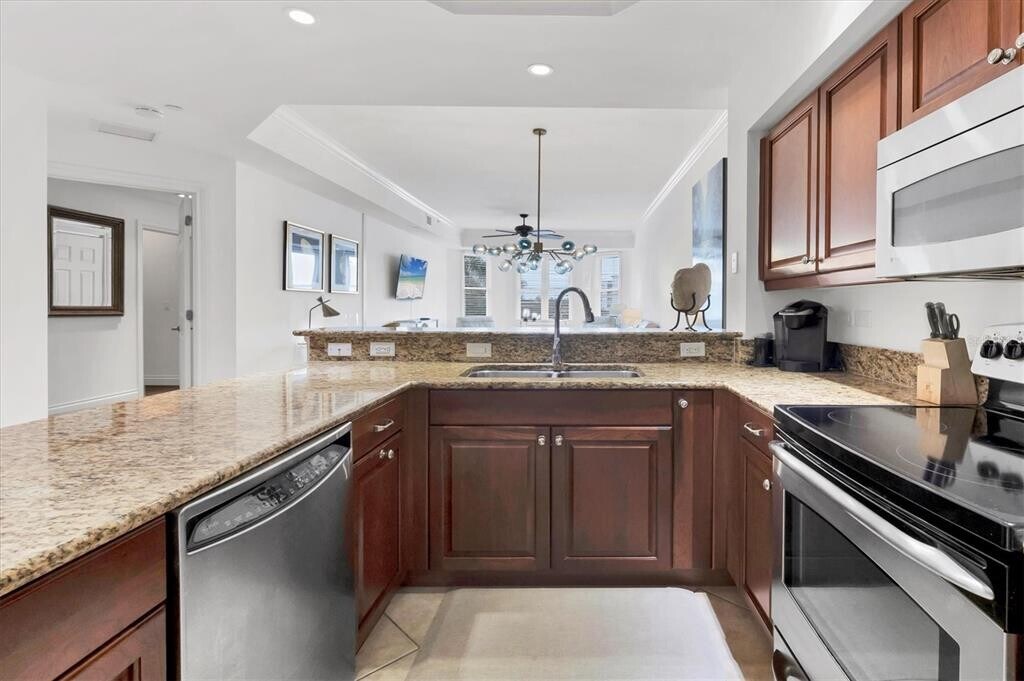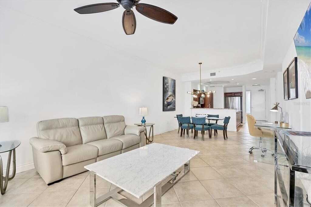 Walk in and be instantly impressed by the quality furnishings,exceptional comfort,and pristine cleanliness of this beautiful condominium,conveniently located in the heart of Lakewood Ranch’s Main Street district. Take the elevator to the third floor and enjoy charming views of Main Street right from your home. You’ll be living in the heart of a vibrant small downtown community,surrounded by popular restaurants,a movie theater,a mini golf course,shops,gyms,and more. Lakewood Ranch Medical Center is just across the street,making this location ideal for both short and long stays. The unit offers an assigned parking space,with additional public parking available if needed. Inside,you’ll find everything you could possibly want,including a private primary bedroom with a king-size bed,walk-in closet,and a spacious en-suite bathroom with double vanities,a walk-in shower,large linen closet,and a private water closet. The guest bedroom also offers a walk-in closet,en-suite bathroom,queen-size bed,and TV. The fully stocked kitchen has everything you need to prepare meals,even a full Thanksgiving dinner. The comfortable living room,furnished with luxurious Italian leather reclining furniture,a large TV,and a glass-top desk,is the true heart of the home. This home consistently earns 5-star reviews from every guest. Come stay with us—we promise you will be delighted with your experience. MLS# A4657738