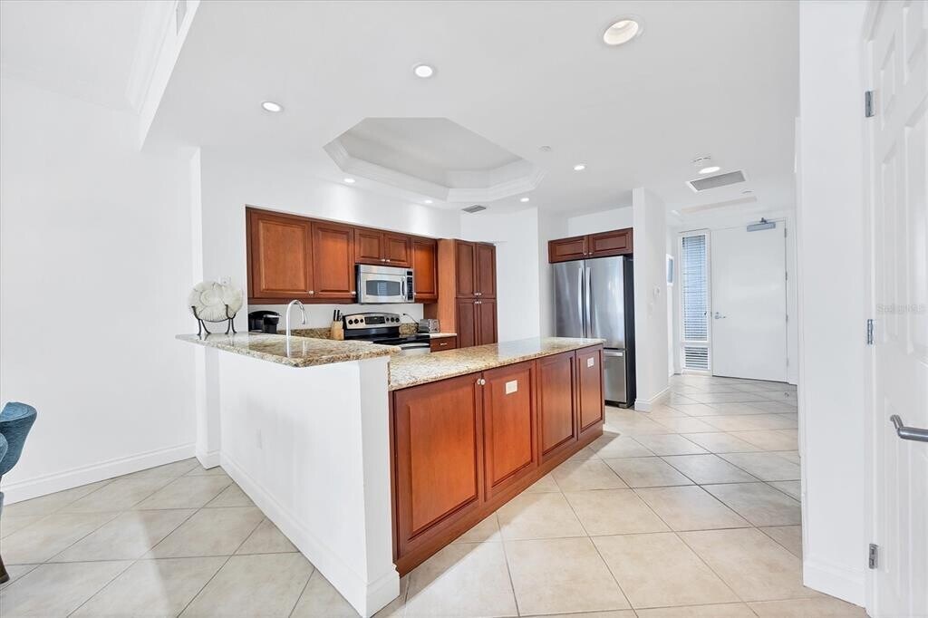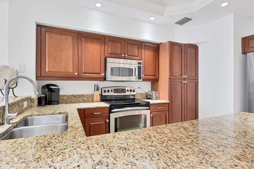 TURN KEY,ALL INCLUDED! One Month Minimum! Enjoy an elegant experience in this centrally located place. From your unit’s windows,you can take in views of downtown Lakewood Ranch,fountains,a movie theater,mini-golf,shops,and restaurants. This recently renovated condo is bright and spacious. The living room features brand-new Italian leather furniture—both the sofa and chair are reclining and incredibly comfortable. Additionally,there is a large granite coffee table and modern side tables. A 75-inch TV is mounted in the living area for your entertainment. The modern glass dining table comfortably seats six,making it perfect for gatherings. The primary bedroom boasts a king-size bed,a large dresser,and a TV. The guest bedroom features a Scandinavian-style bedroom set with a queen-size bed and a TV as well. The kitchen is fully equipped,so you can even prepare a Thanksgiving dinner with ease! For your convenience,the unit includes an in-unit laundry. An elevator provides easy access to the assigned parking space. Immerse yourself in an elegant and convenient experience at this exceptional property! MLS# A4639503