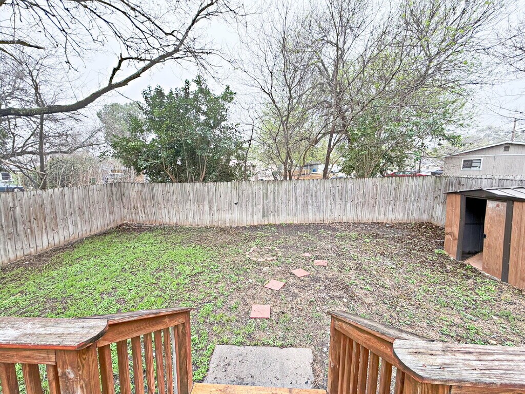 Duplex. 2 bedrooms, 1 bath. Granite counter tops with tiled backsplash and custom cabinets. Vinyl wood flooring, ceramic tile. Appliances including stackable washer & dryer. Both bedrooms have rear access to the large deck. Large backyard with privacy fence and deck. Gorgeous stone tiled bathroom with vessel bowl sink. Water is allocated. Minutes from Medical Center, IH-410, and IH-10.