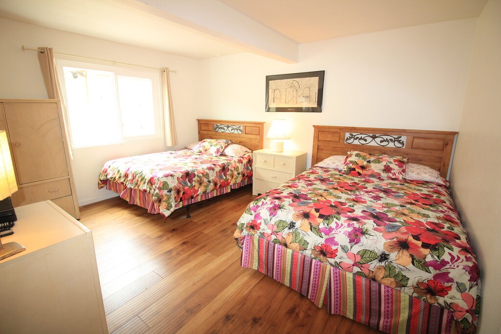 Property Id: 195371 Furnished. No Pets, No Smoking, No Parties $3875/mo- 8/15-6/15 $9000/mo - 6/15-8/15 Lovely two bedroom, one bath ground floor condo with spacious flowing floor plan and a private front patio, huge bedroom with two queen beds and 55" smart TV, second bedroom with one queen, full bath with tub shower. Features covered carport, Granite countertops in the kitchen with tile flooring in the kitchen, dining room, bathroom and hallway. Pergo flooring in Living Room. Hardwood Floors in bedrooms. Large Patio, Laundry onsite, 1 reserved parking space, LED Lighting. BBQ, 400 mbps WIFI and Cable. This Duplex is close to Belmont Park (Mission Beach Amusement Park): Wavehouse with manmade wave machine, indoor olympic size pool, jacuzzi, and health club. Great for every age: Roller coaster, rides, jungle gym, go carts, glow in the dark minature golf, etc. Lots of restaurants and shops steps away and miles of boardwalk for strolling, biking, and blading.