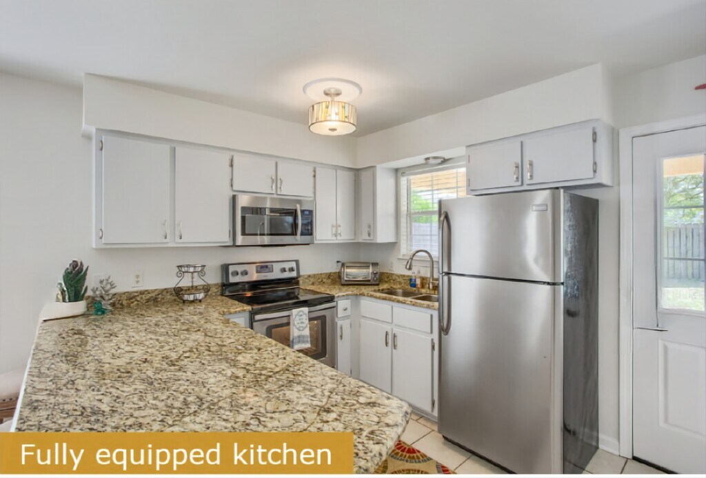 Karyton SolutionsDelightfully spacious, this beachy home boasts an open living area with a beautiful coastal, bohemian design. Plush seating faces a smart tv, and the open concept flows right into the lovely kitchen and dining areas. The charming, wicker dining set hosts 4 guests for family-style meals, while 3 barstools along the kitchen counter offer a space for casual dining and drinks. The kitchen is fully equipped with stainless steel appliances, coffee maker, and cookware for convenient meals at home. When it comes time to enjoy indoor leisure time, your group can spread out, all at once snacking in the kitchen, playing games at the table, watching movies on the tv, and more! The quality time you’ll spend here is what it’s all about. Located in the heart of the Florida Panhandle, Panama City Beach. Estrella del Mar is conveniently located just minutes away from the beach, where you can spend your days soaking up the sun and taking refreshing dips in the water. You’re within easy walking distance of the sand and the many beachside restaurants and shops that are characteristic of PCB. Life is organized around the unbeatable beaches with delicious food, inspired shopping, and live entertainment up and down the coast. Utilites are not included. Townhome is fully furnished or can be rented without furniture for$2,000.