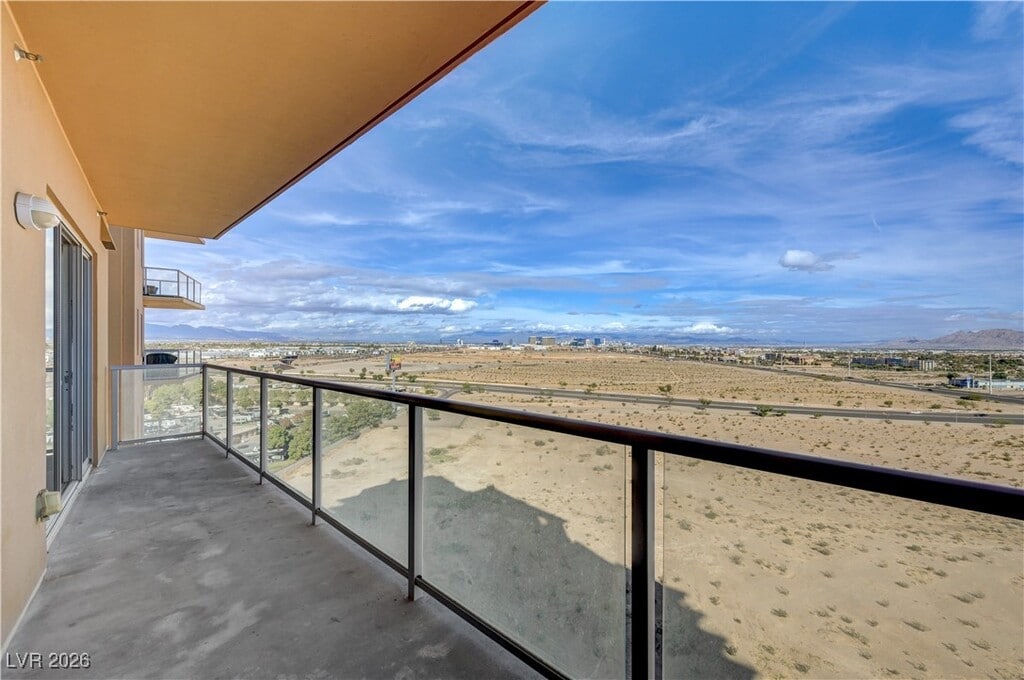 The Largest Condo in the Building – Over 2,800 Sq Ft of Luxurious Living! This exceptional residence offers 4 spacious bedrooms, including 3 with en-suite baths, and a unique fourth bedroom with its own private exterior entrance. Recently and meticulously remodeled with the finest finishes. The expansive living room is drenched in natural light and features a built-in bar with wine fridge, plus access to a stunning wraparound balcony showcasing partial Strip and breathtaking mountain views. The chef-inspired eat-in kitchen boasts quartz countertops, custom backsplash, and a generous pantry. Retreat to your private primary suite—a true sanctuary with its own balcony, sitting area, electric fireplace, oversized walk-in closet, and a spa-like bath that has been fully reimagined. Residents enjoy world-class amenities: concierge service, a resort-style pool with BBQ areas, a two-story fitness center, business and conference centers, movie theater, two dog parks, and more. A MUST SEE!!