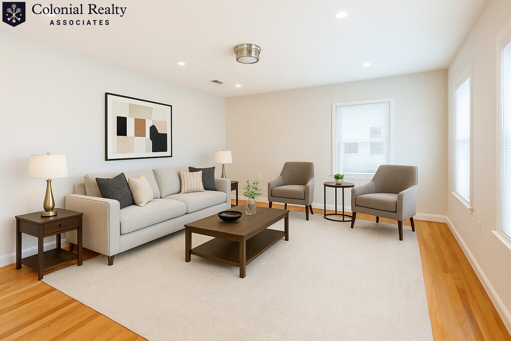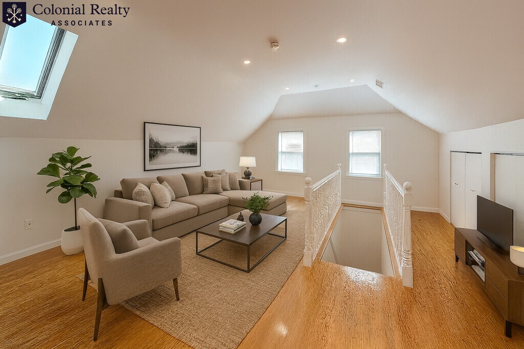 JUST RENOVATED! BEAUTIFUL MODERN 3 BED 2 BATH IN WATERTOWN’S EAST END – AVAILABLE NOW!Located on the 2nd & 3rd floors of a well-kept two-family,this freshly painted unit features hardwood & tile floors,recessed lighting,and a stunning eat-in kitchen with new stainless appliances leading to a private back deck. Spacious living room with decorative fireplace opens to a large front deck. Two bedrooms and a full bath on the main level; a large upper bedroom with ensuite bath,stand-up shower,and in-unit laundry. Central heat & A/C,driveway parking,shared yard. Pets considered case-by-case. Near Arsenal Yards,public transit,and major routes. $3,895/month. Available now! No undergrads or smokers. Virtual tour available; inquire for link. Some photos virtually staged. No basement storage. MLS# 73425600