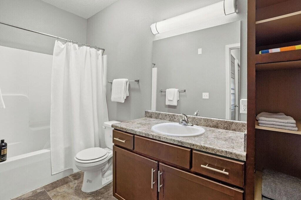 Feel at home in this modern retreat located near West Des Moines’ premier shopping, dining, and entertainment hub at Jordan Creek Mall. This first-floor apartment offers an open-concept layout. This apartment features a bedroom with a walk-in closet, a patio with a grill, and a private garage. The kitchen is fully stocked with cookware and bakeware essentials, plus salt, pepper, and olive oil, as well as a Keurig Duo including coffee pods, sugar, and creamer. A private, in-unit washer and dryer with included supplies are available for your convenience. Onsite amenities include an outdoor heated swimming pool, an expansive fitness center with free weights and cardio equipment, and a free tanning bed. If you're bringing your furry friend along, there is a fenced dog park to let them roam free or take advantage of the open field at the front of the property. A pack n' play and booster seat are available to keep your kids comfy and entertained. Conveniently located on the edge of Jordan Creek Town Center, everything you will need is within easy reach. Pop into some of West Des Moines' best bars, shops, and lakeside restaurants within a short drive. A 3.5-acre lake and boardwalk and plenty of nearby walking trails allows you to head out on foot to enjoy the beautiful Iowa weather. Bonus items include a Bluetooth speaker, a large umbrella, and a folding wagon/cart. The clubhouse makes a great additional workspace for those looking for a change of scenery. High-speed wireless internet access is available throughout the entire apartment and at the community amenities. [SI]