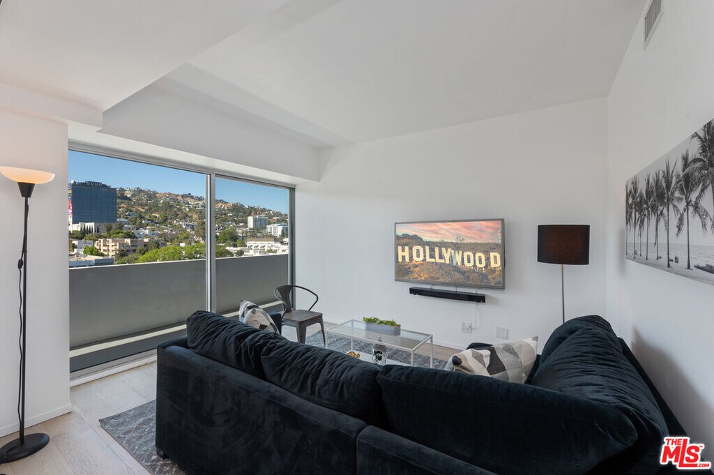 Move-in special: Assume current lease at $7,299 a month through April 23, 2026, then $7,800/month thereafter. Jetliner views of Downtown and Hollywood Hills from this stunning corner unit in full-service building. Amazing newly renovated one bedroom with large den, en suite with steam shower, powder room. Fully furnished with TV in office/den, white stone countertops, light hardwood and stone floors, Fleetwood doors, large open Chef's kitchen, washer/dryer, nest, google home, and more. Cable and internet included. Located in the uber-chic Plaza Towers / 838 North Doheny condominiums has completed a two-year, twelve-million-dollar renovation. The building includes 24-hour concierge, valet parking, a ground-level pool, a rooftop pool with spectacular 360 city views, fire-pits, sundecks, gym, advanced building systems & security technology. Smoking not permitted in unit or building. All furnishings and accessories in photos included. Select pieces recently updated for a fresh, modern look. Features new washer/dryer and glass balcony railings. Availability is subject to the current tenant's move-out on October 31, 2025 MLS# 25609663