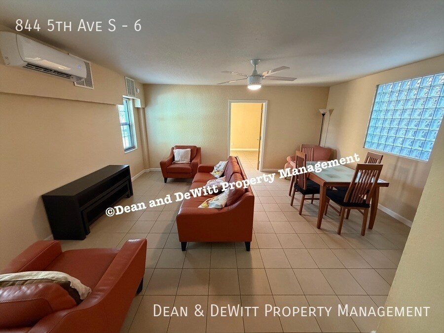 Available now for move in within 30 days 12 month lease Prince Gregor Apartments One bedroom, one bathroom First floor Partially furnished or unfurnished (optional) The historic Prince Gregor Apartment building in Downtown St. Pete. 12 units in total ranging from Studios, One Bedroom, and 2 Bedrooms. Brand new stainless steel appliances, counter tops, and backsplash to complete your kitchen. New individual euro style mini-split HVAC systems with remote for efficient interior climate control. All units include water/sewer/trash. Laundry facilities on site and secured key FOB entry. Each unit has its own reserved parking spot in the gated lot. Come see this charming building! Community Amenities - Gated Assigned Parking - Key FOB Building Entry - Walkability to Downtown St. Pete, Dining, Shops, and Art Water/sewer/trash, Gas, Internet/Wifi included One or two adult dogs under 35 lbs (no aggressive breeds) with pet screening fee of $25, minimum $300 additional deposit for dog, non-refundable pet fee $300 for dog, $25/mo per dog. Applicants with dogs are required to provide a photo, animal license, current shot records and have renter's insurance with pet liability. $95 non-refundable application fee for each adult covers credit and background check. $100 administrative fee will be charged upon approval. The unit will not be reserved for applicant until administrative fee is received by management. Once paid, management will process tenant, create lease, send move in instructions, etc. Security deposit due upon approval; Full first month's rent due prior to move in Basic approval requirements include a gross monthly income of three times the rent, a clean background, and fair to good credit No smoking is allowed in the unit or anywhere else on the premises Dean and DeWitt is acting as a leasing service only for this property