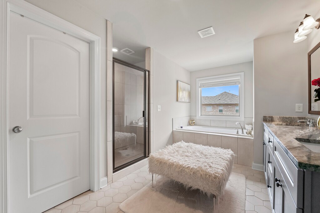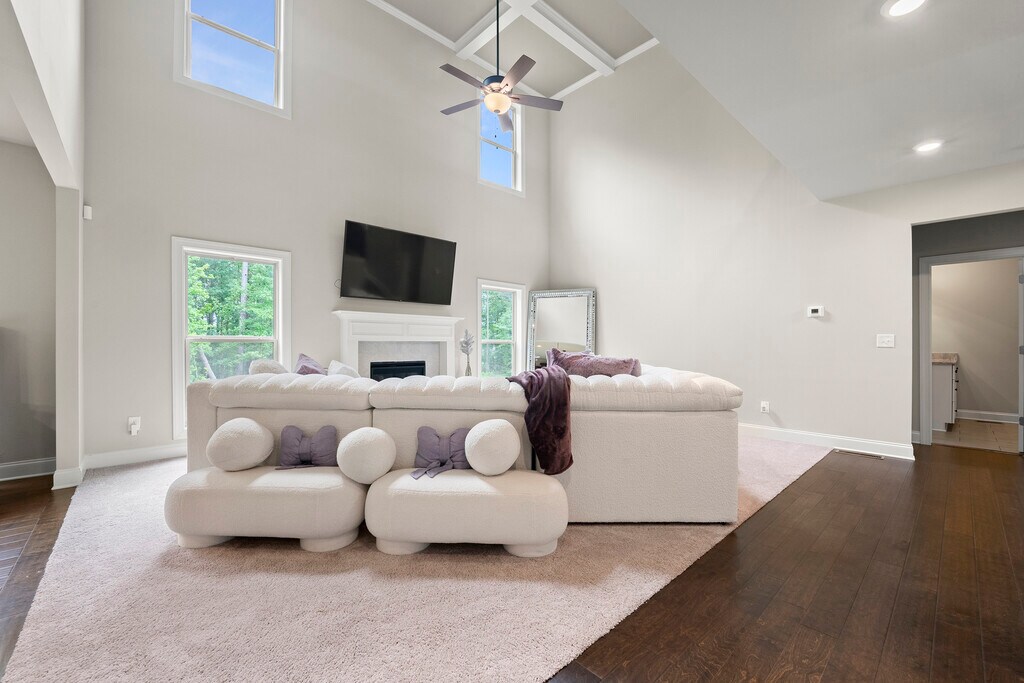 Spacious 5 Bedroom / 4 Bathroom Home with Basement and 3-Car Garage This beautifully designed home offers the perfect blend of space, comfort, and functionality. Enjoy a dramatic two-story family room with coffered ceilings, creating an open and inviting atmosphere. The chef's kitchen features granite countertops and an oversized island, ideal for everyday living and entertaining. Hardwood floors run throughout the main areas, adding warmth and sophistication, along with a convenient guest suite on the main level. Upstairs, the owner's retreat includes a private sitting area, offering a quiet escape. Three additional bedrooms and two full bathrooms provide ample space for family or guests. The full unfinished basement offers endless potential for storage, a home gym, or future expansion. A rare three-car garage adds even more convenience. MLS ID 10713038