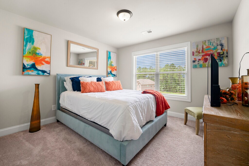 Spacious 5 Bedroom / 4 Bathroom Home with Basement and 3-Car Garage Enjoy a dramatic two-story family room with coffered ceilings, creating an open and inviting atmosphere. The chef's kitchen features granite countertops and an oversized island, ideal for everyday living and entertaining. Hardwood floors run throughout the main areas, adding warmth and sophistication, along with a convenient guest suite on the main level. Upstairs, the owner's retreat includes a private sitting area, offering a quiet escape. Three additional bedrooms and two full bathrooms provide ample space for family or guests. The full unfinished basement offers endless potential for storage, a home gym, or future expansion. A rare three-car garage adds even more convenience. This home delivers space, flexibility, and thoughtful design in every detail. Tenant pays all utilities, gas, power, water, internet, and yard maintance. Owner covers pest control.