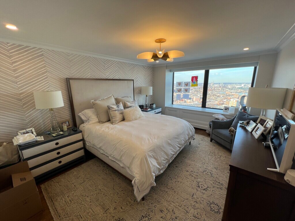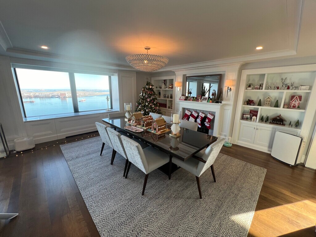 Enjoy breathtaking views of the North End, Harbor and Seaport from this rarely available “ABC” unit at the top of Harbor Towers’ coveted Tower One. This 4+ bedroom unit expands across half the entire floor, boasting one of the largest living spaces in the building (a bonus extra room can be used as a 5th bedroom or office). Recently renovated kitchen and baths where sunlight streams in all day from the southern exposure. Upgraded hardwood floors throughout the bedrooms and living spaces. Harbor Towers offers 24/7 concierge, on-site management and is pet-friendly. This oasis in the heart of the city offers resort-like living with a seasonal heated pool overlooking the harbor, common grilling area, patio dining tables, lush landscaped grounds, expansive lawn, and children's play area. Enjoy the best of Boston from this prime location next to the Greenway, steps from the Harborwalk and Seaport. Commuting is a dream with easy access to Rt. 93, Mass Pike, water shuttles and multiple MBTA stations. - 4+ bedrooms/3.5 bathrooms (37th floor) - Two Balconies - Fully furnished - Renovated kitchen (Subzero appliances, 6 burner stove) - Renovated bathrooms - Cable/internet included (huge projector TV) - Hardwood floors - Stunning City and Harbor views - Air conditioning - Heat, hot water, & gas utilities included (tenant pays for electricity) - 24/7 Concierge and Security Gate - Laundry in-unit - Heated pool - Heated garage parking spot - Elevator access - Pet friendly - Common grilling area