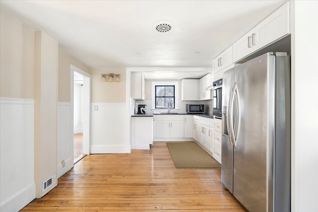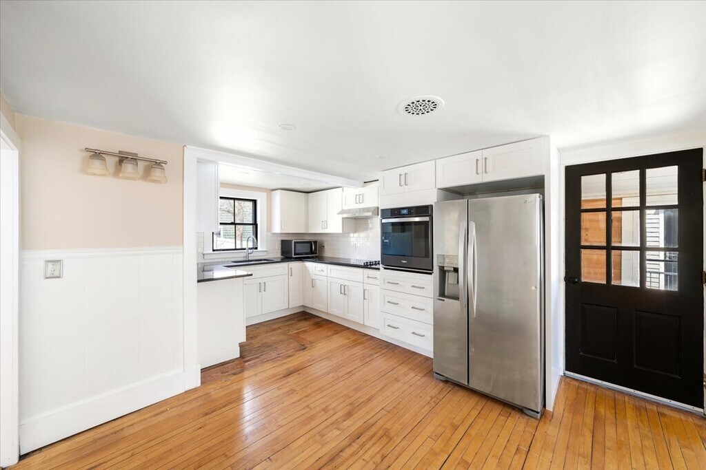 Set along picturesque Park Street in North Reading, this beautifully updated home blends timeless character with thoughtful upgrades. Featuring 3 spacious bedrooms, the main level offers a sun-filled living room, flexible dining room or den, and an inviting enclosed porch for added living space. The BRAND NEW kitchen shines with quartz countertops, modern finishes, and a fresh, clean design, complemented by gleaming wood floors and central AC throughout. A standout feature is the 2009-built reproduction barn, offering 2 bonus rooms, a 3/4 bath, and kitchenette—ideal for extended living, guests, or a private office/gym. Conveniently located near schools and downtown, this property delivers versatility, style, exceptional value and endless possibilities. Open House Sunday 4/19 at 12:00 to 1:00 PM