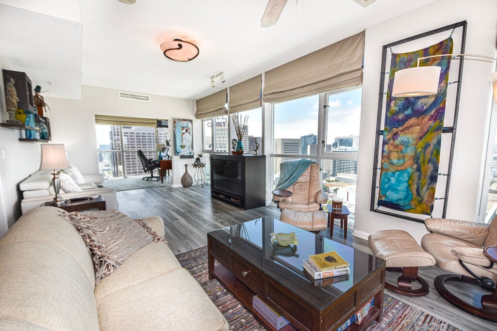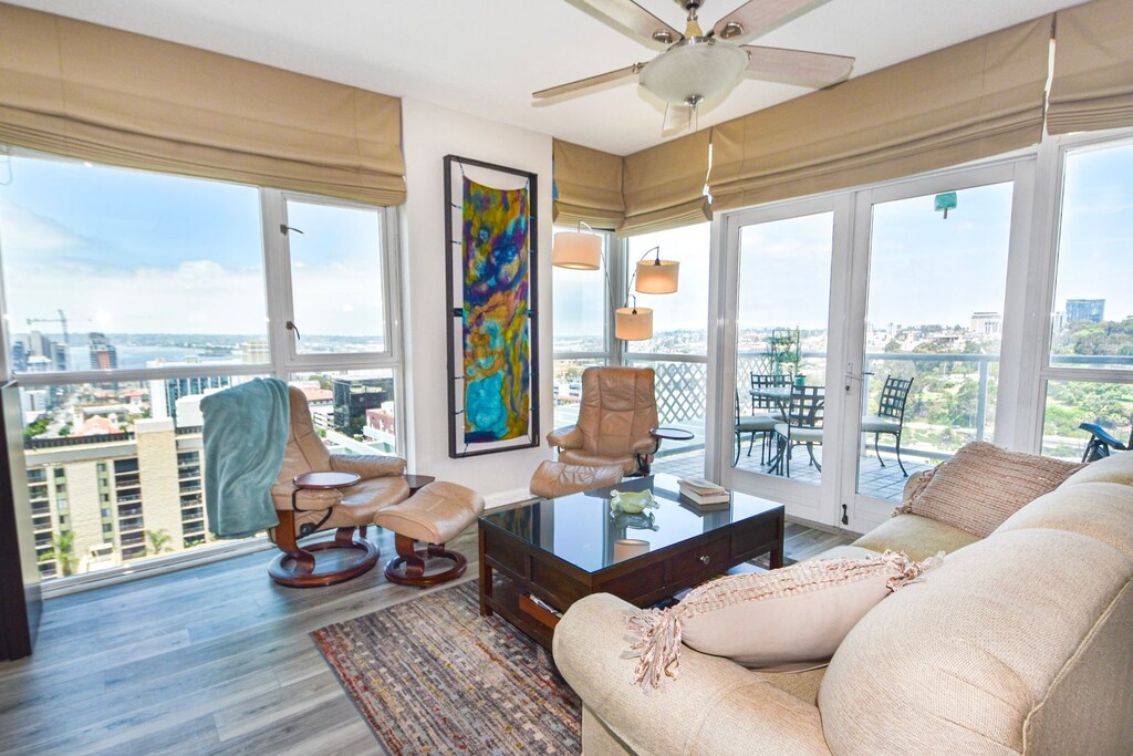 FURNISHED MIDTERM & LONG-TERM RENTAL — Urban Dream: 3BR in Downtown’s Peaceful Corner Relax in this spacious 3BR / 2BA condo in Cortez Hill—one of downtown’s most peaceful enclaves while still close to Little Italy,the Gaslamp,Balboa Park,and the waterfront. Generous living room offers plush seating and abundant natural light. A fully stocked kitchen and dining area make cooking and gathering easy for families or professionals staying longer term. A private outdoor terrace expands the living space with BBQ,dining table,and lounge seating—the perfect spot for morning coffee or sunset evenings under the San Diego sky. Resort-style community amenities include pool,spa,steam room,sauna,gym,lounge areas,and outdoor relaxation spaces. Sleeping Setup (max 6): BR1 Queen • BR2 Queen • BR3 Two Twins (convertible to King) 2 Full Baths Ideal for corporate stays,families,remote workers,and relocation clients seeking comfort + calm in downtown. Minimum 30-day rental. Monthly rates vary with lease length; inquire for details. Rates reflect short-term rental pricing and vary by season and duration. Published amounts are estimates; final pricing,fees,and availability are subject to change until a signed agreement. Please inquire for an exact quote. MLS# 250044841
