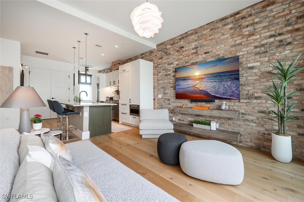Live in the heart of Old Naples just steps from 5th Avenue and blocks from the beach. Virtually new,this two bedroom plus den,2 bath condo features an open floor plan,high ceilings,wide-plank wood floors,and abundant natural light and oversized terrace. The kitchen offers a luxury appliance package,Wolf range with gas cooking,sub-zero and opens to spacious living and dining areas. The primary suite includes a spa-like bath,while the den works perfectly as an office or guest space. Designer furnishings,custom window treatments,and turnkey convenience make this home move-in ready. Enjoy a private balcony with sunset views plus boutique amenities: resort-style pool and spa,outdoor grilling,rooftop summer kitchen,covered parking,and secured entry. Available furnished and accessorized for a seasonal rental. Unit was rarely used.