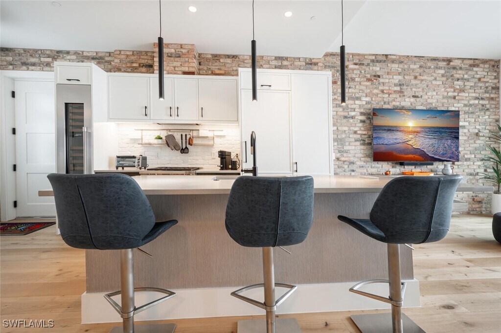 Available Seasonally ($13,000/M) and Annually ($6,000/M). Emphasizing the significance of location,this exquisite 2-bedroom,2-full bathroom luxury condominium serves as an ideal winter retreat. Exuding contemporary vibes,this residence includes a gourmet kitchen with a spacious breakfast bar,a natural gas stove,Sub-zero appliances,a wine cooler,and quartz countertops. The primary suite,adorned with a king-sized bed,large windows,and beautiful wood floors,offers a generous and tastefully decorated space. The primary bathroom boasts dual sinks,a walk-in shower,and tiled floors. With the versatility to function as both a second bedroom and office space,the couch conveniently unfolds into a queen-sized guest bed. The second bathroom is equally impressive with a walk-in shower. The open lanai overlooks the courtyard and is adorned with ample seating,providing an inviting setting to savor a glass of wine and unwind. Positioned in the heart of Naples,the iconic 5th Avenue and 3rd Street is just minutes away. The condominium complex features a resort-style pool,a rooftop outdoor patio,a built-in grill,a firepit,and comfortable seating,enhancing the overall appeal of this remarkable downtown residence. Live exceptionally in Olde Naples!