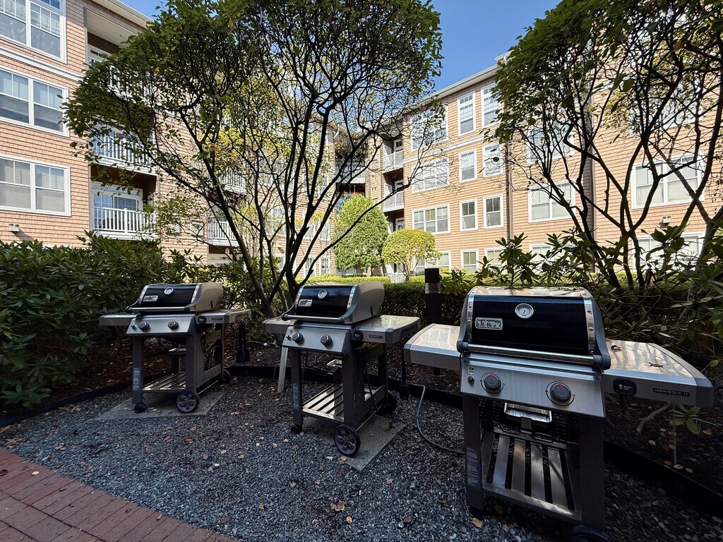 Call for Availability - Luxury condo living in Stamford! Gorgeous open concept 2BR/ 2BA unit features a beautiful modern kitchen with granite countertops, stainless appliances, and a large kitchen island that doubles as a breakfast bar. Light floods into the large living/ dining area through oversize windows and a door leading to the large terrace. 9' ceilings, hardwood floors and and electric fireplace add to the luxurious feel. The primary bedroom suite has brand new carpet, a large walk-in closet, and a full ensuite bath. The second bedroom has hardwood floors, a large closet, and doors that open onto the large terrace. There is a full size laundry in unit, with extra storage in closet. Apartment has been fully painted. Building amenities include a fitness center, a professionally landscaped courtyard with community gas grills and seating, covered garage parking with one assigned space and plentiful guest/ visitor parking, meeting room, concierge, two elevator access points. Very conveniently located near the Stamford Metro North/Amtrak Station, I-95 on/off ramps, all of the fun in downtown Stamford proper, etc. It's a great place to live! MLS# 24143699