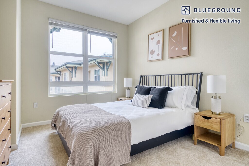 Feel at home wherever you choose to live with Blueground. You’ll love this spacious San Bruno furnished two bedroom apartment with its modern decor, fully equipped kitchen, and bright living room. Ideally located, you’re close to all the best that San Bruno has to offer! (ID #SFO622) The advertised rate of $4,140/month is the lowest available price, based on a 12 month(s) stay with a move-in date of March 1, 2026. Rates vary depending on the duration of stay, season, and other parameters. For exact pricing and additional pricing components, please visit our website and enter your desired move-in and move-out dates. The rate is applicable when billed upfront; it can be higher if billed in multiple payments. Brokers are welcome to reach out. Were you looking for an unfurnished lease? Try Blueground instead and upgrade from unfurnished to furnished living: - Furnished at rates comparable to unfurnished - No setup or furniture costs - save thousands - Move-in ready - save time, just bring your suitcase Designed with you in mind Thoughtfully designed with bespoke finishes, modern furnishings, and a fully equipped kitchen, you’ll enjoy that “I’m home” feeling with this Blueground apartment. Whether you’re lounging in your sophisticated living room streaming the latest and greatest entertainment on the smart TV or premium wireless speaker, or getting some well-earned rest on the superior quality mattress with luxury linens, you’ll fall in love with everything this San Bruno apartment has to offer. This apartment also offers in-apartment laundry. Sleeping arrangements King Bed, 70.8in/180cm Queen Bed, 63in/160cm Amenities Building amenities unique to this two bedroom apartment include an on-site: - Dryer - Elevator - Washing machine - Parking - Pets allowed Arrival and ongoing support The entire apartment is yours to enjoy! Throughout your stay, you’ll have access to our Client Experience team through the Blueground App. You can schedule additional cleanings, submit maintenance requests, and view our neighborhood recommendations with just a few taps. We’ll share all details upon confirmation of your stay. Ideally Located This furnished apartment is located in San Bruno in San Mateo County near San Francisco International Airport. This dynamic city is set within Silicon Valley and is home to YouTube's headquarters. There are plenty of bars, shops, and restaurants right in San Bruno, and San Francisco is just a short distance away. 100-acre Junipero Serra County Park in San Bruno is the perfect place to go hiking on the weekend or meet up with friends for a barbecue or picnic. Most residents rely on their cars to get around, but San Bruno also has its own BART station for easy access to San Francisco and the rest of Silicon Valley. Other things to note This Blueground apartment has flexible lease options, allowing you to book it for one month, a year, or more. Pets are welcome, though weight limits and breed restrictions apply and may incur fees. Parking is offered based on availability and is subject to a fee. We take great pride in ensuring every photo displayed is shot in our own units with our actual furnishings. That said, we regularly refresh our decor and furniture arrangement, which may differ from what’s pictured. [SI]