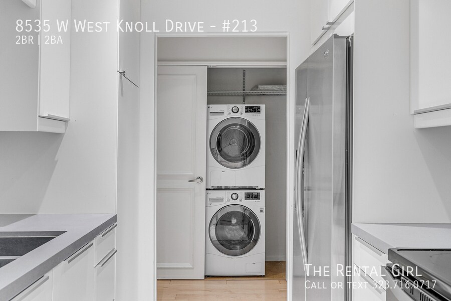 Welcome home to your very own thoughtfully updated 2-bed, 2-bath condo that feels equal parts polished and playful. The layout flows effortlessly from the sleek galley kitchen into an open living and dining area, where clean lines, recessed lighting, and warm wood floors set the tone. A decorative fireplace anchors the space with charm (purely for vibes), while oversized sliders lead you out to a private balcony — the perfect spot for morning coffee or a fresh air evening exhale. The kitchen is crisp and modern with white cabinetry, stainless steel appliances, and plenty of storage, plus the major win of in-unit laundry tucked neatly away in the entry closet with extra storage surrounding it. Both bedrooms are well-proportioned, and the bathrooms are finished in a clean, contemporary style with generous counter space and great lighting — easy, unfussy, and ready to move right in. The building itself checks every WeHo dream-list box: secure entry with elevator access, a dedicated package room, a sparkling pool and sauna for your off-hours reset, plenty of guest parking for visitors, and two side-by-side assigned parking spaces just for you. All of this in a central West Hollywood location that puts you close to everything, yet still feels calm and residential when you’re home. Just moments from Sunset Plaza, Melrose boutiques, and some of WeHo’s best cafés, bars, and restaurants — think Gracias Madre, Dialog Café, Barney’s Beanery, and late-night runs to Jones. This condo is also a quick walk to Trader Joe's, and there's an Erewhon coming soon! You’re also close to Runyon Canyon, Design District shopping, and all the energy of Sunset without having to live right on top of it. If you’re looking for a condo that blends comfort, convenience, and a little West Hollywood magic, this one is absolutely worth a look. Contact Lindsay to see it for yourself.
