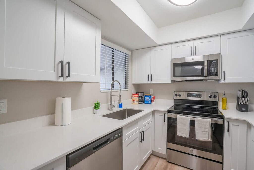 The advertised rate of $2,171/month is the lowest available price, based on a 30 day(s) stay with a move-in date of May 30, 2026. Rates vary depending on the duration of stay, season, and other parameters. For exact pricing and additional pricing components, please visit our website and enter your desired move-in and move-out dates. The rate is applicable when billed upfront; it can be higher if billed in multiple payments. Unwind and feel at home in this stylish, modern 2-bedroom retreat, perfectly situated for both comfort and convenience. Located one flight of stairs up, this chic apartment is your ideal home base. This thoughtfully designed unit features a modern open-concept layout that seamlessly connects the living room, dining area, and kitchen. The living room includes a comfortable sofa bed and chair and a 55” 4K HDR Smart TV. The fully equipped kitchen includes a microwave, stove, oven, refrigerator/freezer, dishwasher, toaster, electric kettle, coffee maker with coffee essentials, sink with hot and cold water, cookware, glassware, silverware, utensils, and a dining table with chairs. Each bathroom includes a bathtub with shower, wash basin, mirror, toilet, towels, hand towels, washcloths, and essential toiletries. On-site parking is available and instructions will be provided at check-in. Pets are welcome in designated units with prior approval with a fee of $20 per pet per night for 1-7 nights, $200 flat rate for 8-29 nights, or $300 flat rate for 30 nights or more. Just minutes from award-winning restaurants, unique boutiques, and historic landmarks, everything you need is within easy reach. Quiet hours are from 10:00 PM to 8:00 AM daily, and violating quiet hours may result in immediate removal from the property without a refund. There is a strict no-party policy, and unauthorized parties will result in immediate removal, police involvement, and no refund. Only registered guests are allowed on the property, and there is a $100 fee per unauthorized guest if discovered. Smoking is strictly prohibited inside the unit, on balconies, or anywhere on the property, and evidence of smoking will incur a $500 fine. Unauthorized pets will incur a $500 fine. Noise sensors are installed in units to monitor volume levels, and tampering will result in a fine. Check-in is between 4:00 PM and 12:00 AM, and check-out is by 10:00 AM. Unauthorized late check-out will result in a $500 fee. [SI]