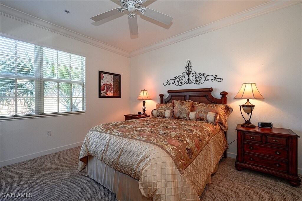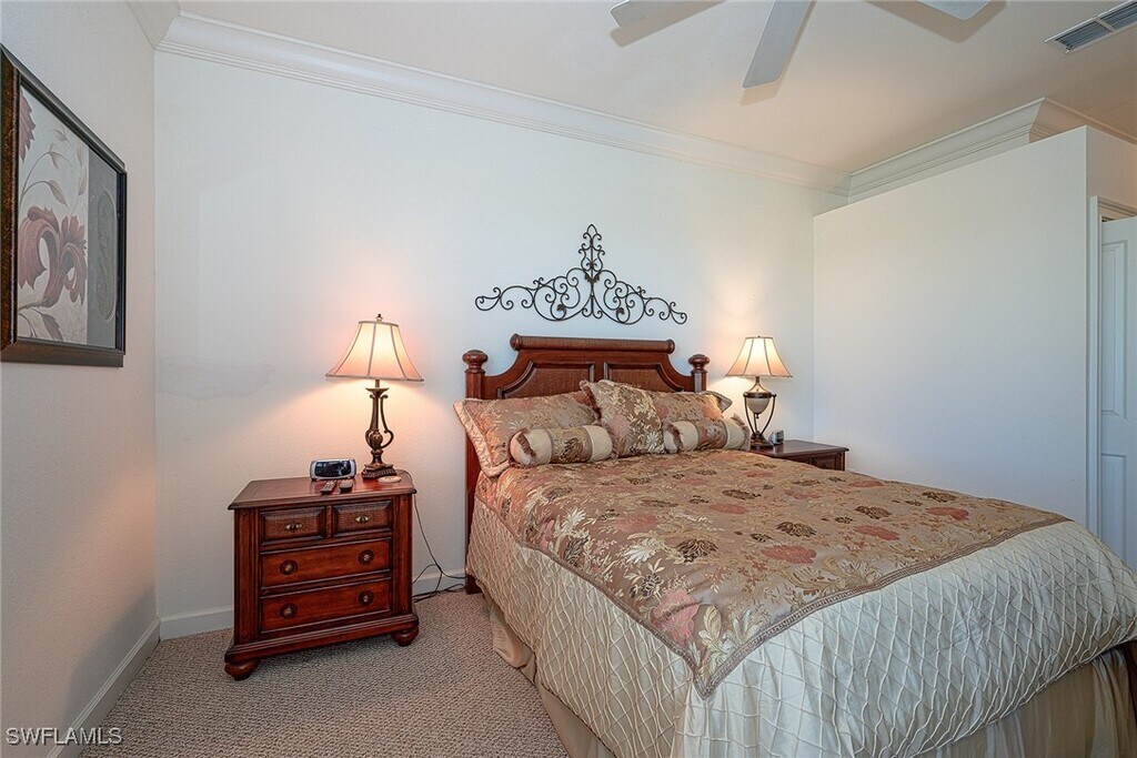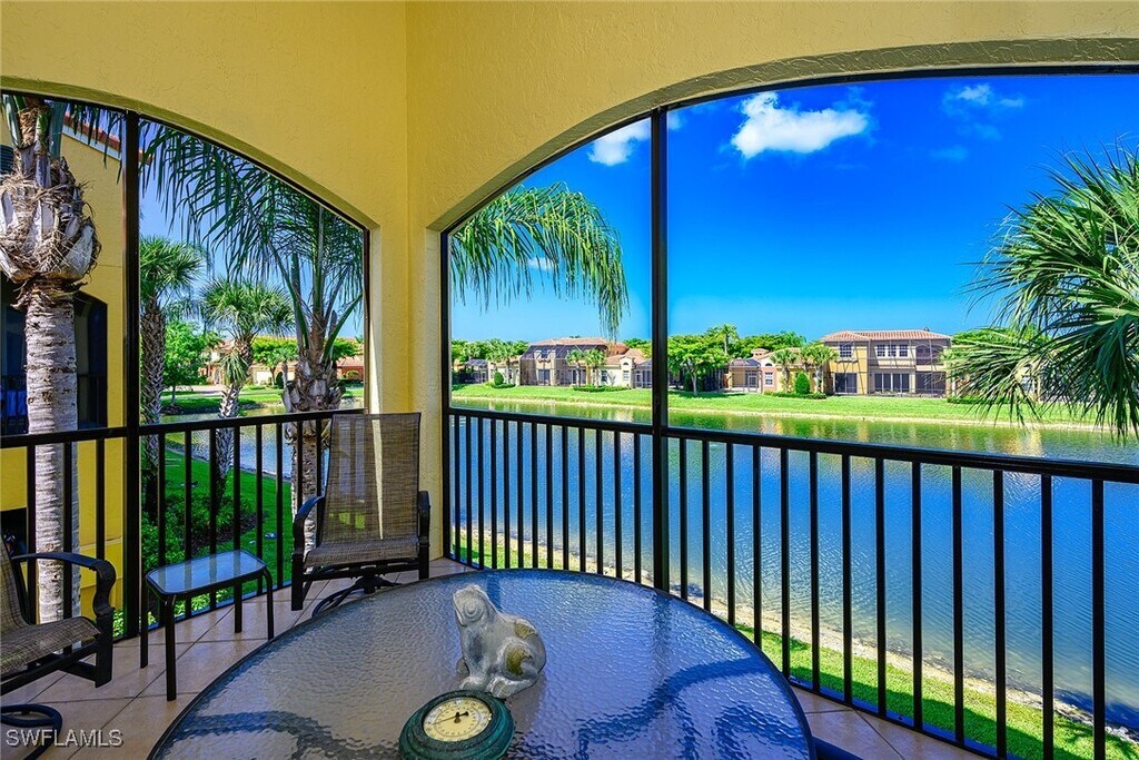 This three bedroom two bath second floor unfurnished condo is ready to move in. This open floorplan of this end unit condo has windows in every room making it a very light and bright condo. The lanai and great room have a wonderful view out to lake and Palm trees. A good size kitchen with granite counters,plenty of cupboard and a pantry space. Master bedroom has a nice view of lake also with door leading to lanai. Master bath has duel sinks and a large walk in shower and bath. The second bath has a deep soaking tub. Walk,drive or bike to the Clubhouse with two lagoon style pools,spa,Jr Olympic screened lap pool,5 har-tru tennis courts,manned fitness center,full time tennis pro,fishing piers,walking and bike paths,bocce ball courts,and a full calendar of events planned by the Activity Director. The best part is you can walk to the Coconut Point Mall with over 20 restaurants,Fashion Row and all your stores for your everyday needs. Minutes to the beaches and just 12 miles to the airport.