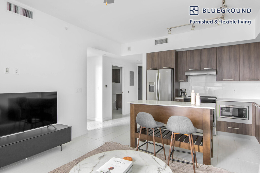Discover the best of Miami, with this one bedroom apartment in Brickell. It’ll be easy to simply show up and start living in this furnished apartment with its fully equipped kitchen, living room, and our dedicated, on-the-ground support. (ID #MIA88) The advertised rate of $3,990/month is the lowest available price, based on a 11 month(s) and 29 day(s) stay with a move-in date of September 8, 2026. Rates vary depending on the duration of stay, season, and other parameters. For exact pricing and additional pricing components, please visit our website and enter your desired move-in and move-out dates. The rate is applicable when billed upfront; it can be higher if billed in multiple payments. Brokers are welcome to reach out. Were you looking for an unfurnished lease? Try Blueground instead and upgrade from unfurnished to furnished living: - Furnished at rates comparable to unfurnished - No setup or furniture costs - save thousands - Move-in ready - save time, just bring your suitcase Designed with you in mind Gorgeous furniture, fully equipped kitchen, smart TV, and a premium wireless speaker are just a few of the amenities you’ll find inside this one bedroom apartment. Ideally located in Miami, you’ll find a lot to love outside as well. When you’re ready to relax, you’ll be happy to discover every Blueground bedroom comes with superior quality mattresses, luxury linens, and cozy towels. We handle everything so you can simply show up and start living. This apartment also offers in-apartment laundry. Sleeping arrangements King Bed, 70.8in/180cm Amenities Building amenities unique to this one bedroom apartment include an on-site: - Dryer - Elevator - Swimming pool - Washing machine - Parking - Pets allowed - Sauna Arrival and ongoing support The entire apartment is yours to enjoy! Throughout your stay, you’ll have access to our Client Experience team through the Blueground App. You can schedule additional cleanings, submit maintenance requests, and view our neighborhood recommendations with just a few taps. We’ll share all details upon confirmation of your stay. Ideally Located This furnished apartment is located in Brickell, a bustling downtown Miami neighborhood that serves as the city’s financial center. Home to skyscrapers and the Brickell City Center, an incredible open-air mall. This walkable neighborhood is also known for its cultural attractions, including the Pérez Art Museum Miami, also known as PAMM, the Museum of Art and Design at Miami Dade College, and the Frost Museum of Science. Although most residents rely on cars to get around, Brickell is served by several bus routes. Other things to note Building amenities may have an extra cost. This Blueground apartment has flexible lease options, allowing you to book it for one month, a year, or more. Pets are welcome, though weight limits and breed restrictions apply and may incur fees. Parking is offered based on availability and is subject to a fee. We take great pride in ensuring every photo displayed is shot in our own units with our actual furnishings. That said, we regularly refresh our decor and furniture arrangement, which may differ from what’s pictured. Also note - This apartment's central location means it can be noisy at times - This apartment is located on a busy street - This is a guarded building equipped with a doorman/concierge at all times [SI]