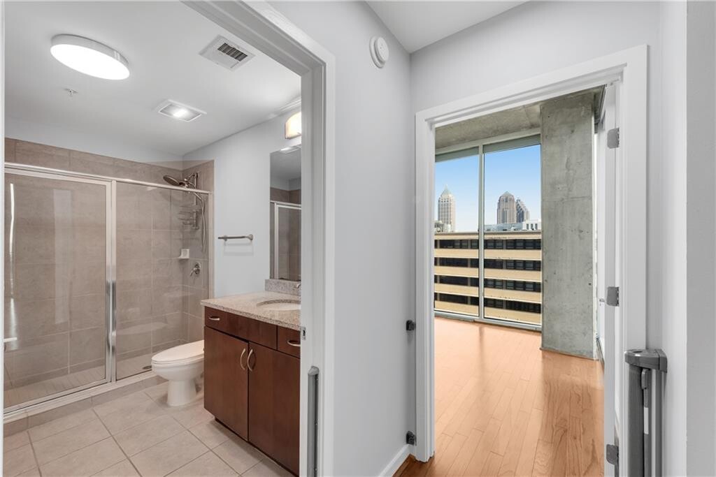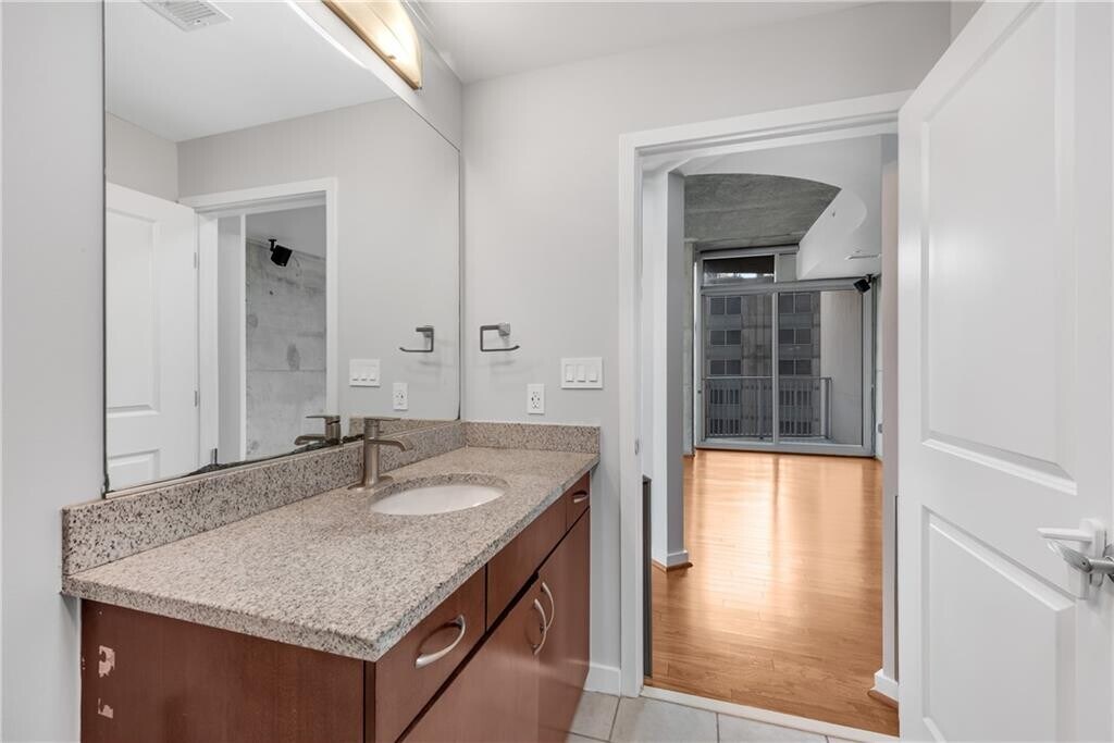 MOVE-IN READY Front corner 2BR unit at Spire with North Views! Hardwood floors through-out - NO CARPET! Granite kitchen w/updated SS appliances including fridge. Built-in desk area or drop zone or even bar area! Washer/Dryer included. Primary suite boasts a custom closet,tile bath,double vanity,garden tub/shower combo. Guest bedroom w/tile bath offering a tile shower. TWO GATED COVERED Parking spaces included. Pet rent will be determined by third party pet screening company. Spire features 24 hour concierge,club room,swimming pool,grilling area & fitness center. Walkable to restaurants,Fox Theater,GT,Piedmont Park and more! MLS ID 7740569