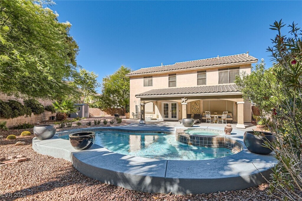 Awesome, fully furnished Summerlin home featuring an open floor plan, ceiling fans throughout, and a huge backyard with a sparkling pool! This home offers custom paint, a mix of solid-surface and carpet flooring, and an enormous primary suite. The open formal living room showcases vaulted ceilings, while the cozy kitchen features tile flooring, granite countertops, and a large pantry. A separate dining area with French doors leads to the backyard, and the family room and upstairs loft provide plenty of living space. The oversized primary bedroom includes a sitting area, dual sinks, a separate tub and shower, and a walk-in closet. The second bedroom is also generously sized. Base rent is $2,500 per month plus $65 for the Resident Benefit Package, totaling $2,565 monthly. Tenant pays for trash, sewer, pool, and landscaping, using licensed and insured vendors with proof of service provided monthly. Verify all fees with your agent before applying.