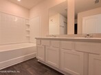Welcome to Morgans Cove! This beautifully maintained newer construction home, offers a spacious open-concept layout and modern finishes throughout. The inviting kitchen features white cabinetry, stainless steel appliances, a large center island with a breakfast bar, and ample counter space—perfect for both everyday cooking and entertaining. The bright and airy living and dining area provides plenty of room to relax or host guests, with sliding glass doors leading to a large backyard for easy indoor-outdoor living. This home offers generously sized bedrooms with an abundance of natural light. The spacious primary suite comes complete with a large walk-in closet and an ensuite bathroom featuring a double vanity and a tub/shower combination. Additional features include luxury vinyl flooring in the main living areas, plush carpeting in the bedrooms, a convenient interior laundry room equipped with a washer and dryer, and a two-car garage. Located in a quiet neighborhood close to shopping, dining, and major roadways, this property provides the perfect balance of comfort, convenience, and modern living. Located in St. Johns County school districts, pet friendly with approval and additional monthly pet rent per pet. Renters insurance is required to rent this home. Availabile for immediate move-in, sorry no smoking permitted.