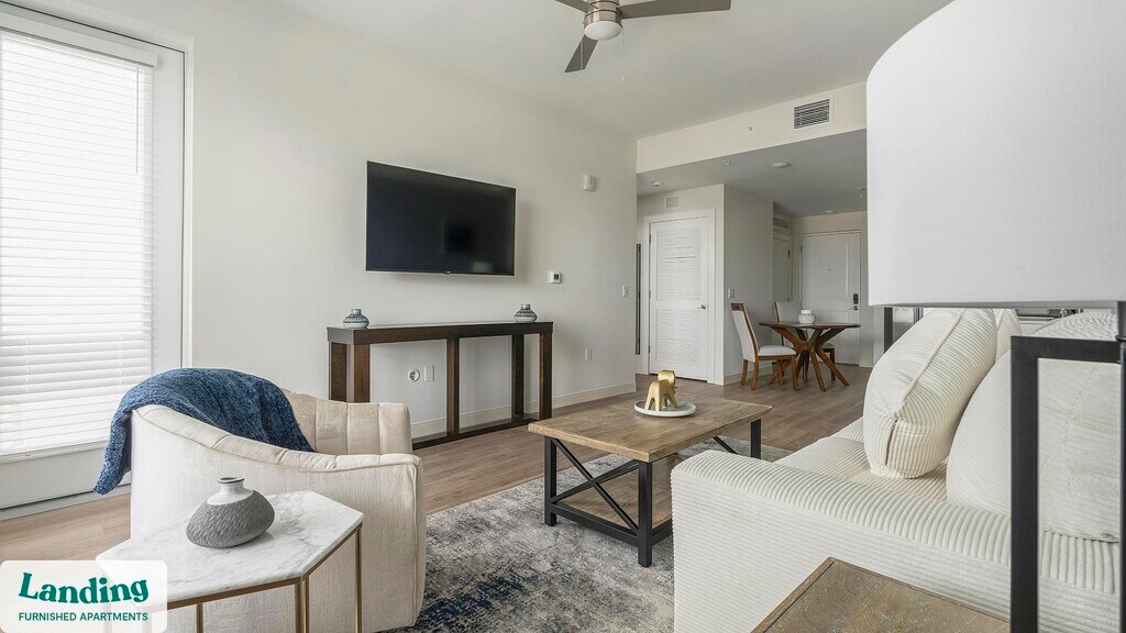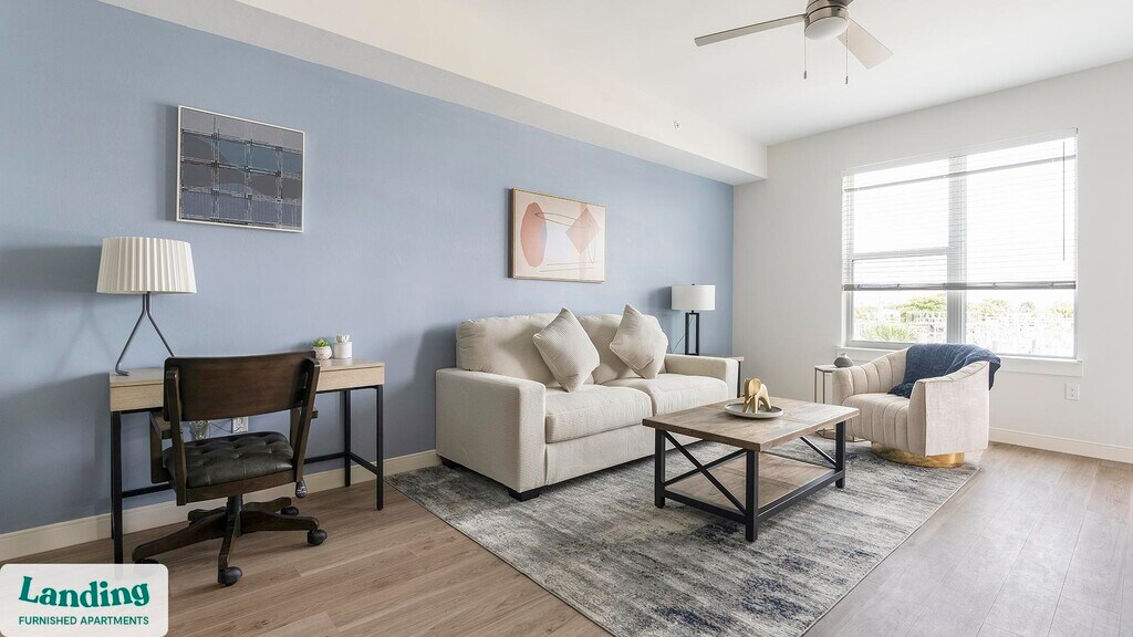 Landing offers flexible lease terms from weeks to months. Please always visit our website or contact us for the latest pricing & availability. Stay longer, save more: 6-Month Minimum base rent: starts at $2390/mo 12-Month Minimum base rent: starts at $2013/mo Landing offers flexible leases across a network of over 35,000 fully-furnished apartments throughout 375+ cities so you can rent on your terms, practically anywhere, and avoid the hassle of paying deposits or application fees. Visit to learn about all the benefits of a Landing membership, see our competitive up-to-date pricing, explore available apartments, take virtual tours, and make reservations online without jumping through traditional rental hoops. Landing's apartments at The Cove at 47th are designed for comfortable, easy living, with the ability to stay as long as you like. Experience living with Landing Every apartment is outfitted with all the modern essentials including: custom-designed furnishings, a fully-equipped kitchen with deluxe stainless steel appliances, a gourmet coffee maker, premium linens, Smart TVs, and incredibly fast, reliable internet for working from home. When you live with Landing, you'll enjoy a hassle-free experience with the added benefit of 24/7 access to our dedicated member experience team. Some of the nitty-gritty: a background check and proof of income are required; we're completely smoke-free; bundled utility packages and pricing vary based on length of stay; pet-friendly options available; listed price reflects a 12-month minimum stay.