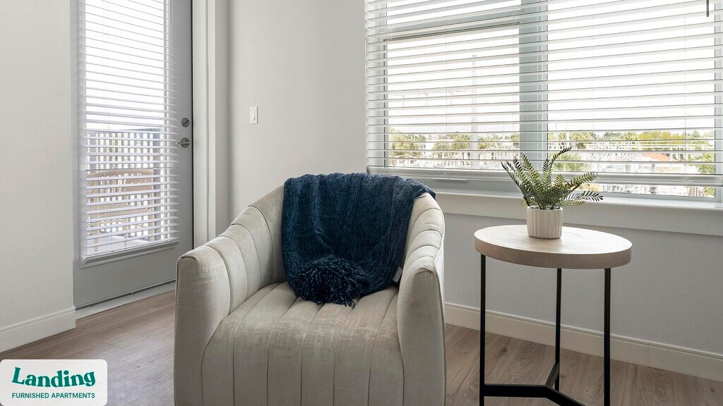 Landing offers flexible lease terms from weeks to months. Please always visit our website or contact us for the latest pricing & availability. Stay longer, save more: 6-Month Minimum base rent: starts at $2390/mo 12-Month Minimum base rent: starts at $2121/mo Landing offers flexible leases across a network of over 35,000 fully-furnished apartments throughout 375+ cities so you can rent on your terms, practically anywhere, and avoid the hassle of paying deposits or application fees. Visit to learn about all the benefits of a Landing membership, see our competitive up-to-date pricing, explore available apartments, take virtual tours, and make reservations online without jumping through traditional rental hoops. Landing's apartments at The Cove at 47th are designed for comfortable, easy living, with the ability to stay as long as you like. Experience living with Landing Every apartment is outfitted with all the modern essentials including: custom-designed furnishings, a fully-equipped kitchen with deluxe stainless steel appliances, a gourmet coffee maker, premium linens, Smart TVs, and incredibly fast, reliable internet for working from home. When you live with Landing, you'll enjoy a hassle-free experience with the added benefit of 24/7 access to our dedicated member experience team. Some of the nitty-gritty: a background check and proof of income are required; we're completely smoke-free; bundled utility packages and pricing vary based on length of stay; pet-friendly options available; listed price reflects a 12-month minimum stay.