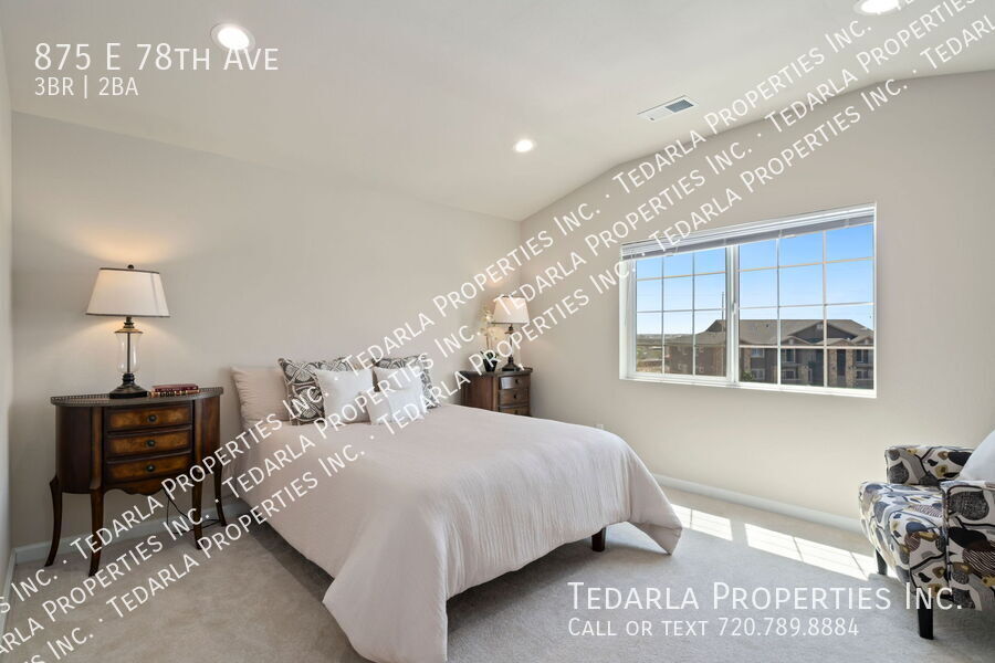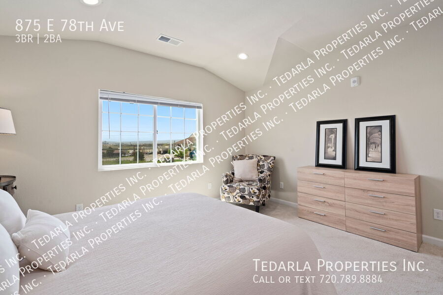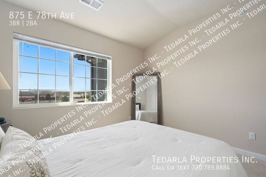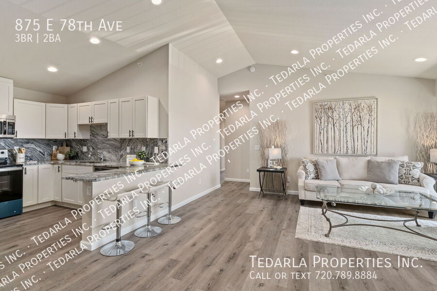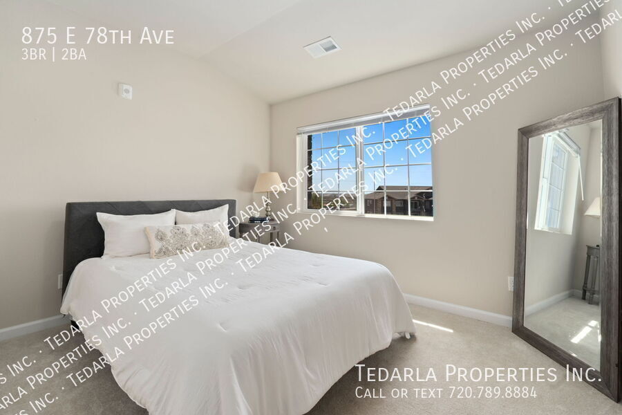 Enjoy an elevated lifestyle in this completely new top-floor condo, which provides a magnificent vantage point of Denvers lively downtown skyline. This 3-bed, 2-bath unit represents true urban living, designed for both comfort and style. Step inside to find an open-concept layout with vaulted ceilings and low-maintenance wood laminate flooring, creating a roomy and welcoming atmosphere. The living room includes a modern gas fireplace as a cozy centerpiece for gatherings or a relaxing retreat. The spacious kitchen features durable marble counters, with all appliances included for easy cooking and hosting. The primary suite offers its own ensuite bathroom and walk-in closet, and every bedroom has soft carpeting for extra warmth. A covered patio extends your living space, perfect for enjoying a morning drink or taking in the twinkling city lights at night. The patio also has a storage closet for seasonal or outdoor items. Parking is readily available, offering ample space for both residents and their visitors. Located in a prime spot, this condo ensures quick access to Denver, DIA, and the entire Metro area, putting city conveniences right at your doorstep. This unit allows a pet. Tenant is responsible for utilities, Deposit is equal to one month's rent. If you would like to see this property, Please go to our Tedarla(dot com) website to set a showing of this unit via Showmojo. Call Ted at with any questions. Applicant has the right to provide Tedarla Properties with a Portable Tenant Screening Report (PTSR) if Applicant provides Tedarla Properties with a PTSR, Tedarla Properties is prohibited from charging Applicant a rental application fee or charging Applicant to access or use the PTSR. Tedarla Properties may limit acceptance of PTSRs to those that are more than 30 days old. Application fee is $50.00 (this amount includes a convenience fee). Pet verification is through Pet Screener, and is required for all pets and may be charged as an additional fee. License #40011520 Central Air Front Patio Pets Allowed Refrig Storage Closet Washer/Dryer In Unit