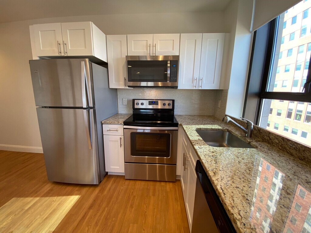 875 Elm Street Apartments 875 Elm St Manchester, NH Luxury Penthouse Level 1 Bedroom Apt for rent. Luxury apartment home in the heart of downtown Manchester. This particular 10th floor penthouse is a corner apartment. Gourmet kitchen featuring quiet close cabinets, granite countertops, state of the art stainless steel appliances and gleaming hardwood style flooring. There is central air and heat, and an in-home washer and dryer in this pet-friendly, non-smoking home. Many amenities are available: urban dog park, resident lounge, outdoor patios and grilling areas, bike storage, a fitness center, and an attached parking garage to name just a few. Gorgeous views of Hanover Street downtown. FEATURES: • 10th Floor Location w/ elevator • Stainless steel energy efficient appliances (including dishwasher & microwave) • Granite counters • Quiet close cabinets • Wood style flooring • Central air and heat • In-home washer and dryer • Berber carpet in bedroom • Large closets • Hanover Street views AMENITIES: • Fitness center • Resident lounge • Outdoor patio • Welcoming lobby • Urban dog park • Attached, covered garage parking • Outdoor grilling areas • Non-smoking • Cat and dog friendly New residents are not required to pay a security deposit. Broker/Owner. MLS# 5069328