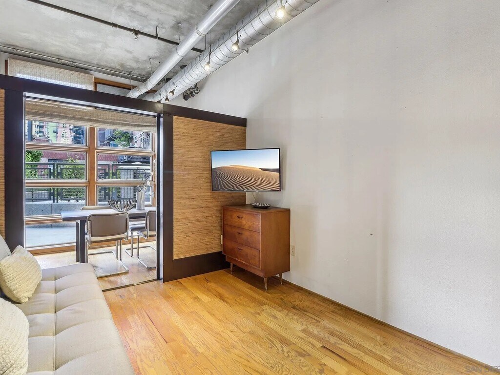 Modern industrial loft in the iconic Parkloft building in the heart of East Village,one block from Petco Park. This spacious open-concept loft features high ceilings,oversized warehouse-style windows,and abundant natural light that highlights the authentic brick and concrete architecture Parkloft is known for. The flexible loft layout creates a bright and airy living space ideal for modern urban living. The home includes a full kitchen with stainless steel appliances,generous cabinet space,and an open layout perfect for entertaining. Additional features include new in-unit washer and dryer,air conditioning,and one secure assigned parking space in the gated underground garage. Parkloft is one of downtown San Diego’s most sought-after loft communities,offering controlled access,24-hour security,a well-equipped fitness center,and a beautifully landscaped courtyard with lounge areas. The building’s unique industrial design and solid concrete construction provide both character and privacy rarely found in typical high-rise buildings. Located steps from Petco Park,the Gaslamp Quarter,top restaurants,coffee shops,and entertainment venues,this residence offers the best of downtown San Diego living with walkable access to everything East Village has to offer. Available now. MLS# 260005283