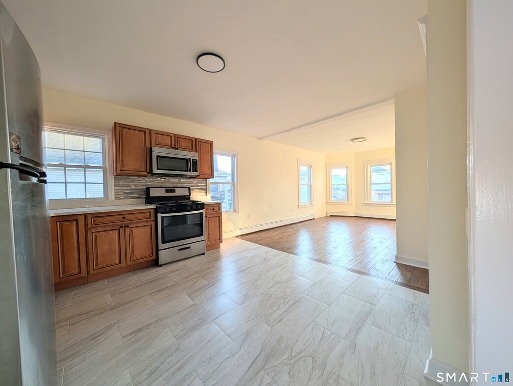 Call for Availability - All Utilities are Included in Rent! Move right into this well-maintained bright third-floor one-bedroom apartment in desirable North Bridgeport location-walking distance to the Trumbull line. This inviting home features a nice sized living room with brand new flooring, an completely remodeled kitchen with stainless steel appliances, quartz counter tops and a modernized bathroom, creating a bright and comfortable living space. Ideally situated near restaurants, public transportation, Sacred Heart University, and major highways. MLS# 24148951