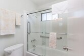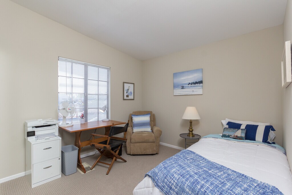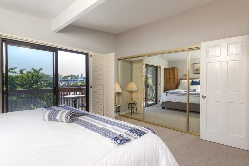 Currently available December 1, 2025-January 1, 2026. Rentals are a minimum of 30 days. It is not available January-April 15, 2026. It is available after April 17, 2026. La Jolla Luxury Condo in ideal location. Two bedroom, two bath, two balcony condo with stunning views that sleeps up to six in the most sought after zip code in La Jolla, minutes from the beach, UCSD, Torrey Pines Golf Course, Scripts Medical Center, La Jolla Cove and so much more! New kitchen with white cabinets and sparkling granite surfaces along with new side by side refrigerator and stylish dishes, coffee maker, blender and more. The double wide sink stands next to a built-in cutting board and other unique features. The trolley is across the street and will take you all over San Diego. Uber ride to the airport is an average of only 15 minutes. This top floor condo features vaulted ceilings filled with natural light and offers a unique twist— an antique bookcase filled with a selection of timeless literature from Shakespeare to Mark Twain to classic children’s books. The condo has two large balconies with views of a quiet courtyard (living room balcony) and romantic view from the Master bedroom (15” plush King mattress!) for guests to enjoy breakfast or the sunset from a lovely bistro table and chairs. The master also has a full bath with separate dressing and shower areas, a wall mounted TV, a wall-to-wall closet and two complimentary cabinet units with separate late night LED reading lights. A second bedroom is multipurpose, with a trundle that makes into two full twins or a queen along with a plush reclining chair for a student, corporate professional, nursing mothers or other traveler seeking a retreat after a long days work or study. The second bedroom also has a desk and director’s chair overlooking the pool and clubhouse with a new printer and office credenza filled with office supplies as well as a closet and dresser unit. The second bath features a marble vanity and enough room to set up a change table or toddler area for larger families. Between the baths and bedrooms is a new tile floor and a full washer and dryer with fully stocked laundry shelves for easy clean up after a fun day at the beach, pool, clubhouse, tennis courts or other countless attractions San Diego has to offer. The living area has a spacious sectional (seating for eight-that converts to a queen sofa bed) and dining room table (seating for six) with tasteful costal art as a centerpiece. The room also has a brand new 50” smart television with WiFi and over 150 channels. The unit offers one underground residential parking place and one guest pass for an adjacent lot. There is an elevator to get to the condo from the parking and entry levels of the complex. It also includes access to a private clubhouse with two tennis courts, multi-purpose billiards/ping pong table, games and a kitchen as well as a hot tub, sauna and beautiful private pool with a BBQ area for renters. In addition, in the condo itself, you will find ping pong and tennis equipment, a yoga mat and free weights. This costal luxury retreat’s owner has spent her career in the arts and wants to particularly welcome writers, actors, painters, musicians, photographers, filmmakers, and others in an artistic or medical field (also a big part of her family). If you decide to rent this property, you will be in very good company with other recognized artists and physicians that plan to make it their retreat in the future. Enjoy!