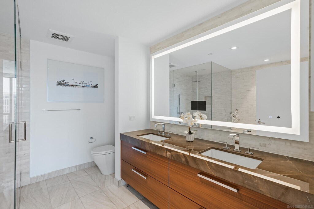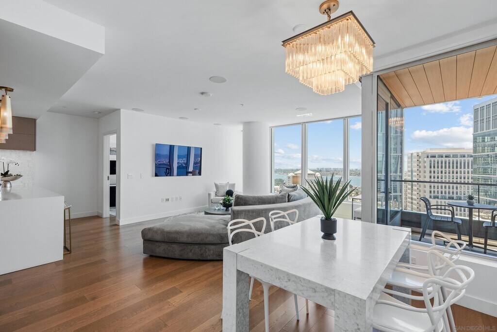 Discover modern elegance in this beautiful turn-key waterfront residence in San Diego’s premier luxury tower,Pacific Gate. With world-class design,resort-style amenities,and a prime waterfront location,this home offers an unparalleled lifestyle of comfort and sophistication. Spanning 1,806 sq. ft.,the open and light-filled floor plan showcases floor-to-ceiling windows framing breathtaking views of San Diego Bay. The chef’s kitchen features high-end stainless steel appliances,sleek countertops,and motorized cabinetry—perfect for both daily living and entertaining. The primary suite offers a serene retreat with a spa-inspired bathroom and walk-in closet,while the secondary suite provides versatility for guests or a home office,complete with its own private bath. Residents of Pacific Gate enjoy access to a sophisticated array of amenities,including a state-of-the-art fitness center,resort-style pool and spa,owners-only luxury yacht share,guest suite,private luxury car fleet,a chef concierge,and on-site restaurant—all designed to elevate everyday living to an extraordinary experience. MLS# 250040914